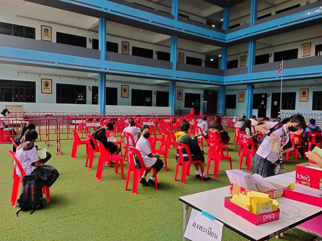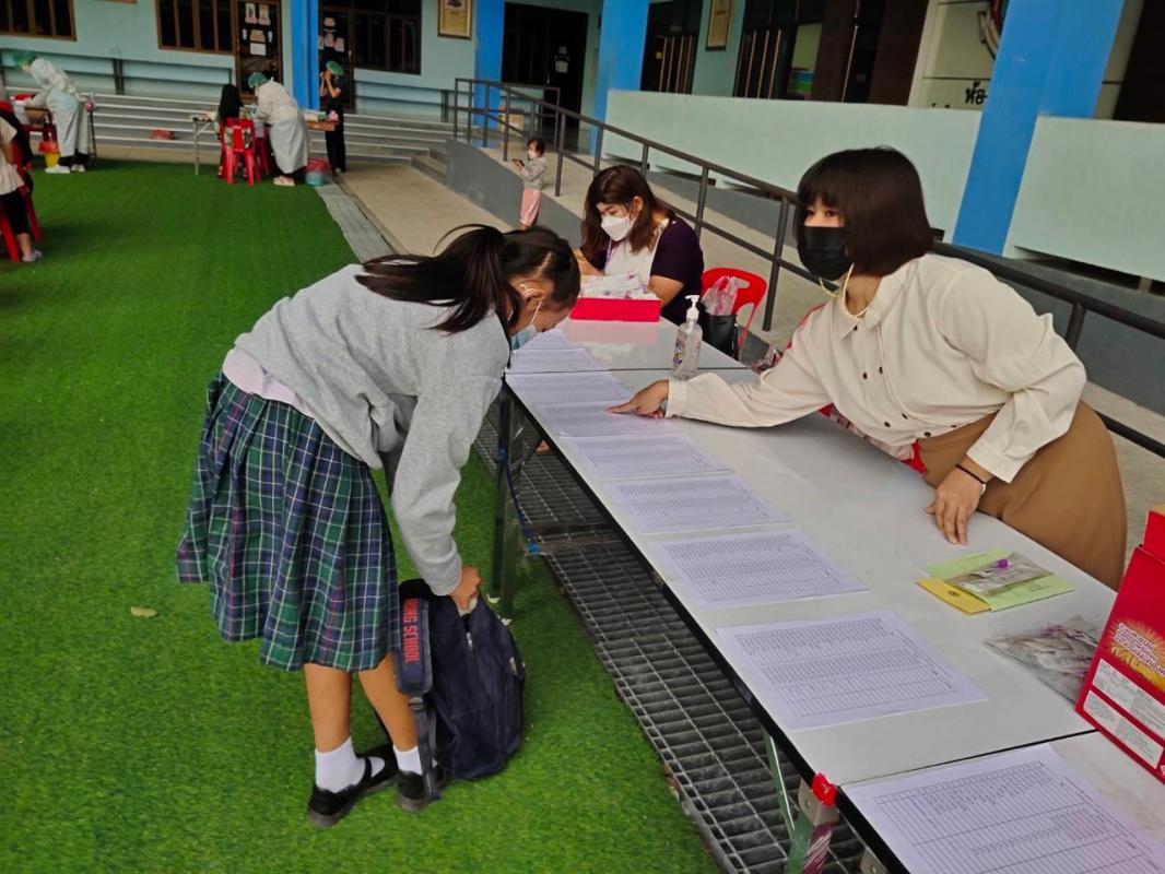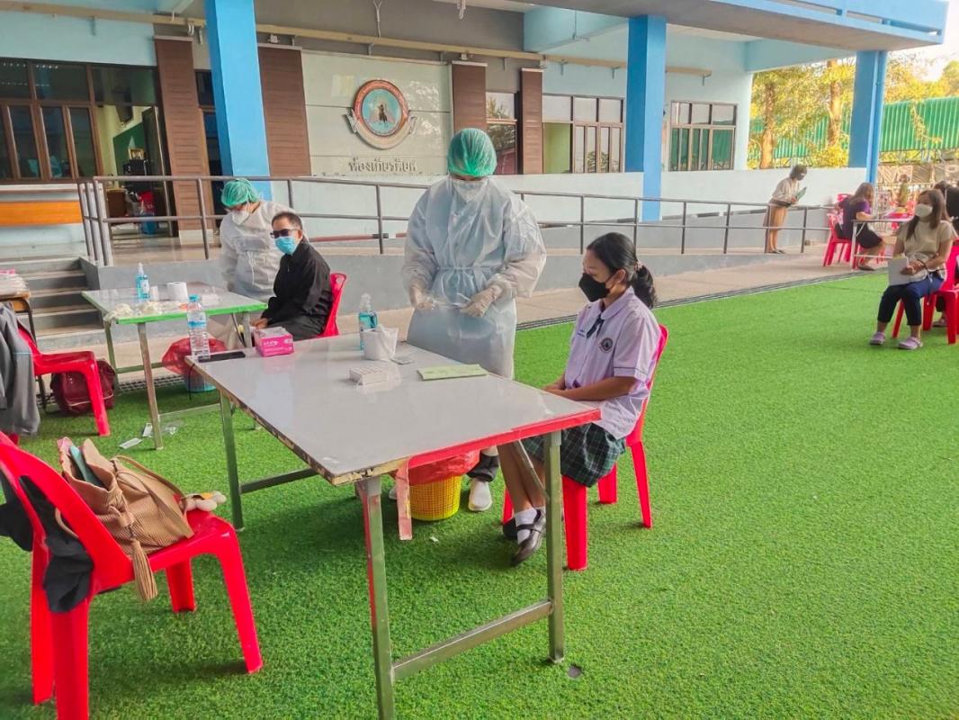 ตรวจ ATK ให้กับนักเรียน ที่เปิดเรียนโรงเรียนมัธยมตากสินระยองและโรงเรียนอนุบาลนานาชาติตากสินบ้านค่าย(หวายกรอง)