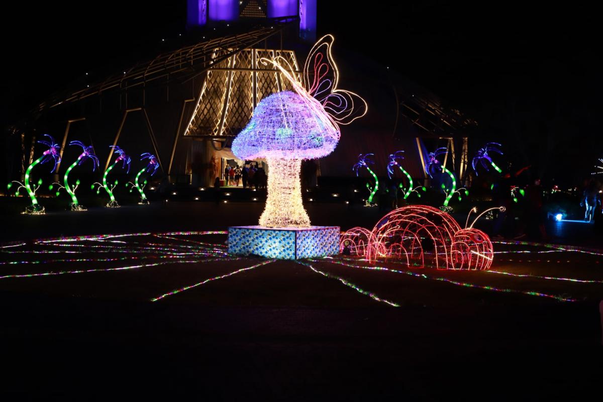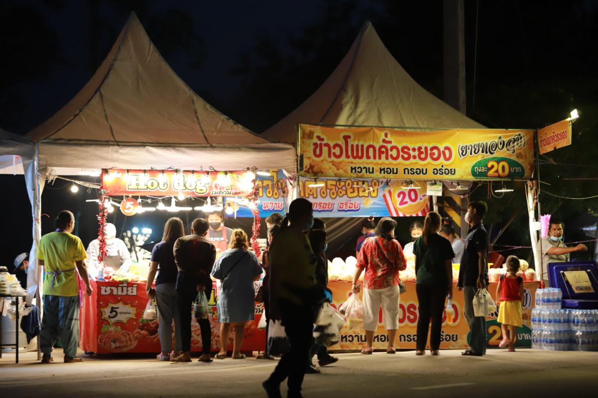 ภาพบรรยากาศงานช่วงกลางคืนโครงการจัดงานวันพ่อแห่งชาติ "ดอกไม้บาน ที่บ้านพ่อ" แสงสียามค่ำคืนของงาน ในวันที่ 6 ธันวาคม 2564 ณ ศูนย์บริการการพัฒนาปลวกแดงตามพระราชดำริ จังหวัดระยอง หรืออ่างเก็บน้ำดอกกราย โดยจะจัดถึงวันที่ 7 ธันวาคม 2564 เริ่มตั้งแต่เวลา 08.30 – 22.00 น. ท่านใดว่างไม่ได้ไปไหนมาชมไฟสวยๆและมาช็อป มาชิมกันนะครับ