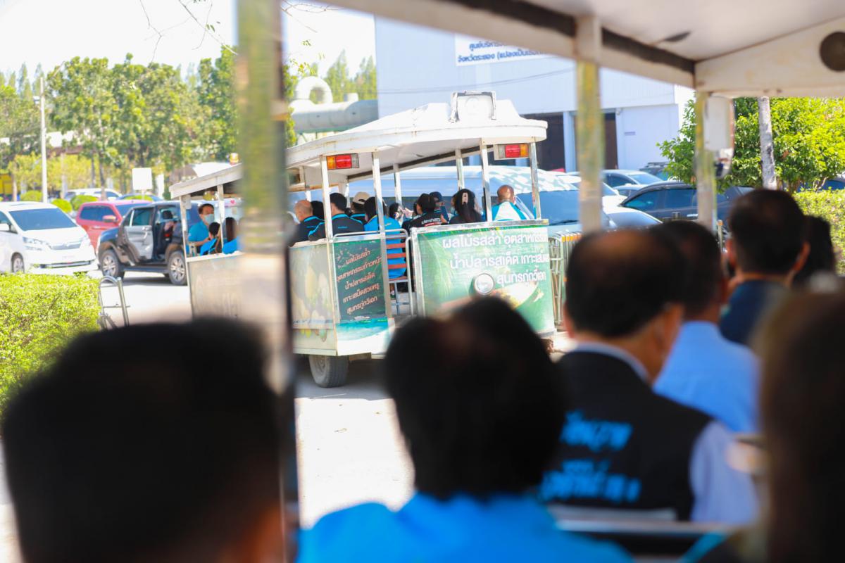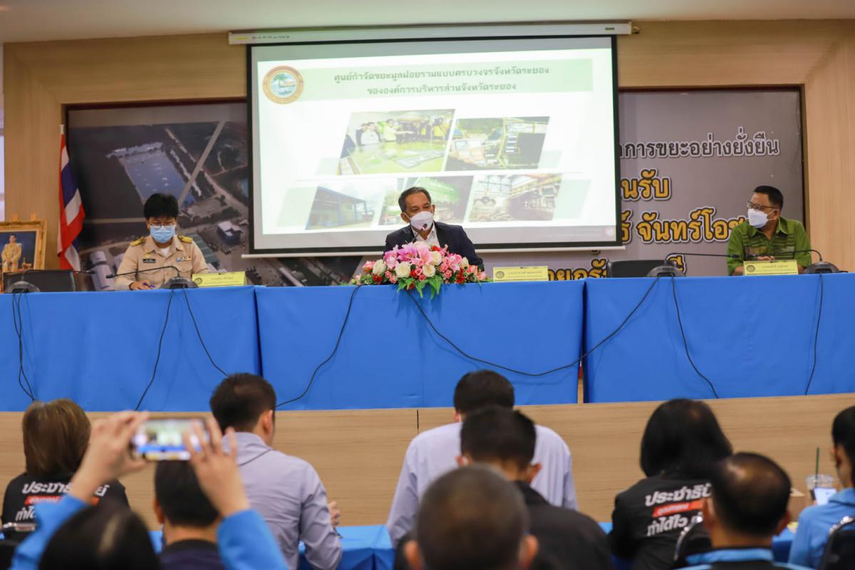 โดยนายสุริยะ ศิริวัฒน์ รักษาการ ผอ.กองสาธารณสุข ได้บรรยายให้ความรู้เกี่ยวกับการบริหารจัดการขยะแบบครบวงจรว่า “องค์การบริหารส่วนจังหวัดระยอง ได้แบ่งพื้นที่ศูนย์กำจัดขยะมูลฝอยฯ ออกเป็นกลุ่มอาคาร โรงคัดแยกขยะมูลฝอย โรงหมักปุ๋ย เตาเผามูลฝอยติดเชื้อ ระบบบำบัดน้ำเสีย และพื้นที่บ่อฝังกลบขยะมูลฝอย ซึ่งขยะมูลฝอยจากทุกชุมชนทั่วทั้งจังหวัดระยอง จะถูกขนส่งเข้ามาที่ศูนย์ฯวันละประมาณ 1,000 ตัน/วัน แยกเป็น 3 ส่วนคือ ส่วนที่หนึ่งขยะที่ขายได้เลย เช่น ขวดน้ำพลาสติก ส่วนที่สอง คือขยะที่สามารถใช้เป็นเชื้อเพลิงผลิตพลังงาน หรือ Refuse Derived Fuel หรือขยะเชื้อเพลิงนั่นเอง โดยขยะที่จะป้อนเข้าสู่โรงไฟฟ้าเชื้อเพลิง RDF จะมีปริมาณ 500 ตัน/ วัน และมีความจำเป็นต้องวางแผนการบริหารจัดการ เพื่อมุ่งแก้ไขปัญหาการจัดการขยะทั้งหมดของจังหวัดระยอง ให้มีระบบการจัดการขยะที่ครบวงจร ด้วยเทคโนโลยีการแปลงขยะเป็นพลังงานที่ทันสมัย เป็นมิตรต่อสิ่งแวดล้อม และสุดท้ายคือขยะจากสารอินทรีย์ต่างๆ เช่น ผัก เศษอาหาร ใบไม้ เปลือกผลไม้ทุกชนิด ซึ่งจะมีกระบวนการทำเป็นปุ๋ยเพื่อนำไปแจกพี่น้องเกษตรกร พร้อมทั้งได้พาคณะศึกษาดูงานลงพื้นที่เยี่ยมชมในส่วนต่างๆภายในศูนย์กำจัดขยะฯ ได้เห็นกรรมวิธีในการกำจัดขยะและขั้นตอนการปฏิบัติงานอย่างถูกวิธี