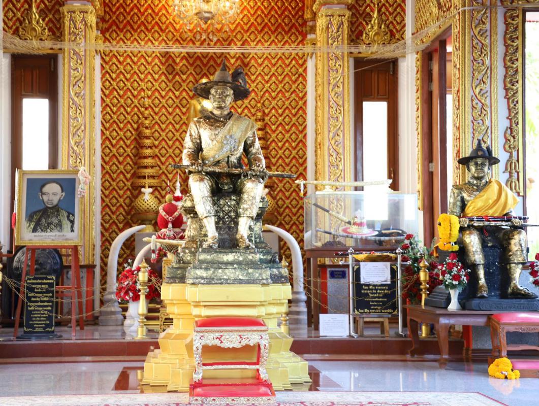 สมเด็จพระเจ้าตากสินมหาราช พระเจ้ากรุงธนบุรีศรีสรรเพชร หรือสมเด็จพระบรมราชาที่ 4 ผู้ทรงเป็นมหาวีรบุรุษสมมติเทวา เสมือนนารายณ์อวตารมาปราบอริราชศัตรู กอบกู้อิสรภาพสยามปฐพีจากการสูญเสียกรุงศรีอยุธยาแก่พม่า เมื่อปี พ.ศ.2310 ทรงรวบรวมเผ่าไทยที่แตกระส่ำระสาย ออกเป็นก๊กเป็นเหล่าเข้าเป็นอาณาจักรเดียวกัน เมื่อครั้งกรุงศรีอยุธยาใกล้เสียกรุงแก่พม่า พระยาตากสินซึ่งเป็น “พระยาวชิรปราการ” ได้รวบรวมสมัครพรรคพวกประมาณ 500 คนเศษ ตีฝ่าวงล้อมพม่ามาทางตะวันออก ผ่านแขวงเมืองนครนายก ปราจีนบุรี ฉะเชิงเทรา ชลบุรี และได้มาพักแรม ณ วัดลุ่มมหาชัยชุมพลแห่งนี้เมื่อวันที่ 27 มกราคม พ.ศ. 2309 และเมื่อทราบว่ากรุงศรีอยุธยาเสียแก่พม่าแล้ว บรรดาขุนทัพ ข้าราชการ และชาวระยองได้ขอให้พระยาตากสิน ประกาศตนเป็นเจ้า เพราะชาติไทยว่างกษัตริย์แล้ว จึงได้มีพิธีประกาศความเป็นเจ้าขึ้น ท่ามกลางชุมนุมชนเหนือคชสารใต้ต้นสะตือต้นนี้ ณ ค่ายวัดลุ่มมหาชัยชุมพล แขวงเมืองระยอง