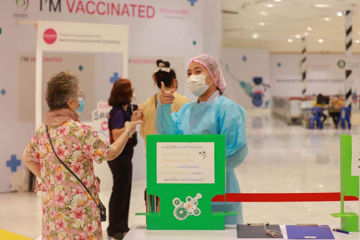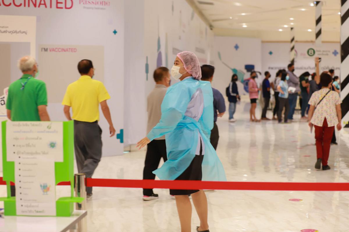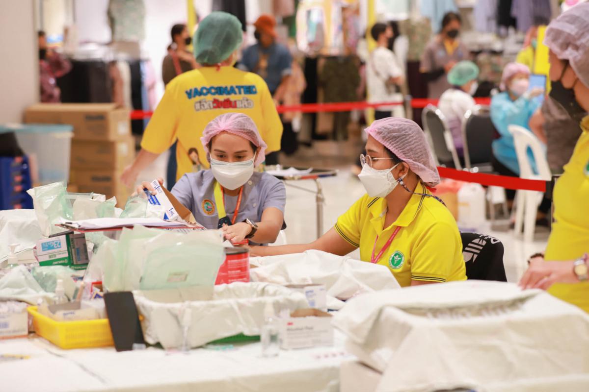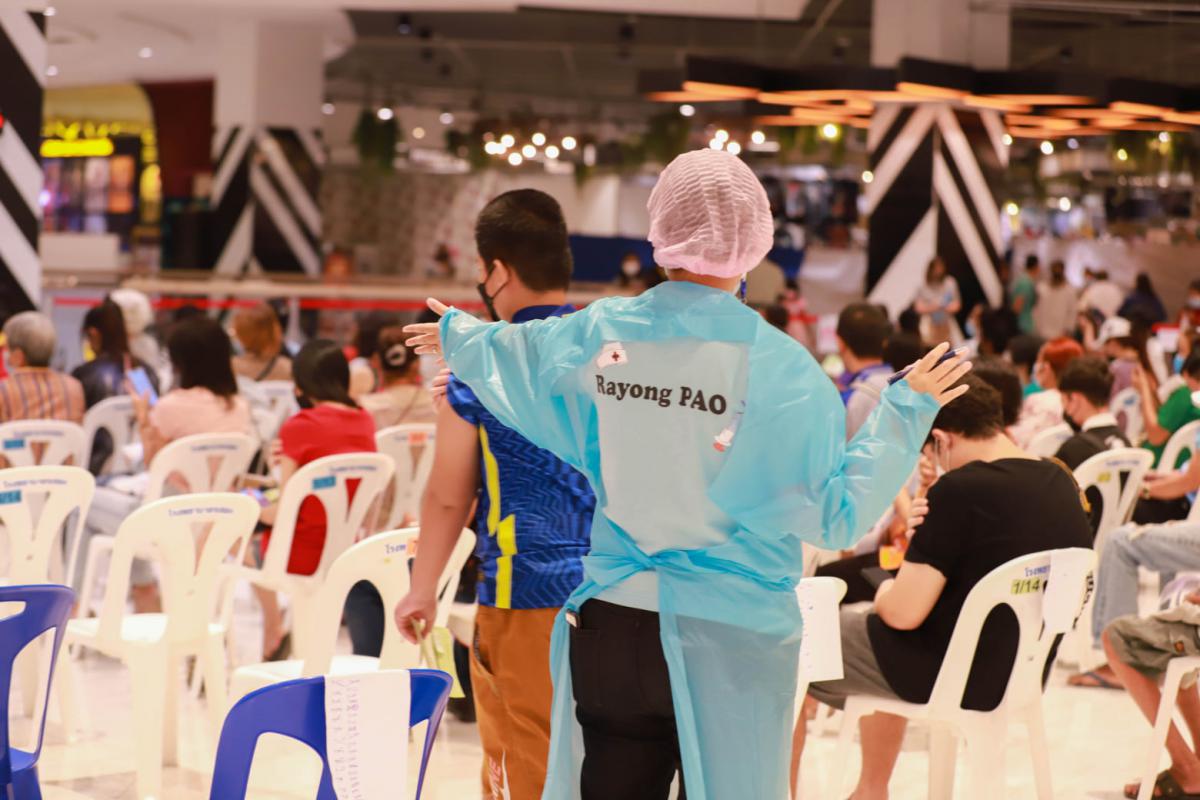 กองสาธารณสุข องค์การบริหารส่วนจังหวัดระยอง ร่วมกับ โรงพยาบาลระยอง ส่งเจ้าหน้าที่พยาบาลช่วยเหลือการฉีดวัคซีน ณ ห้างแหลมทองระยอง