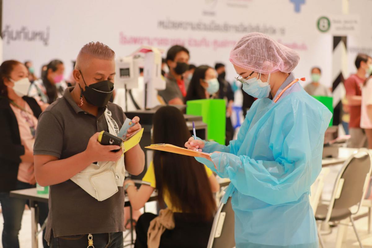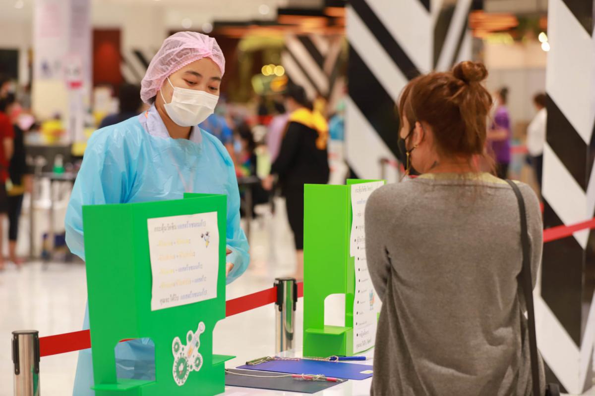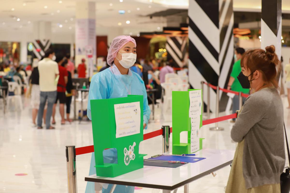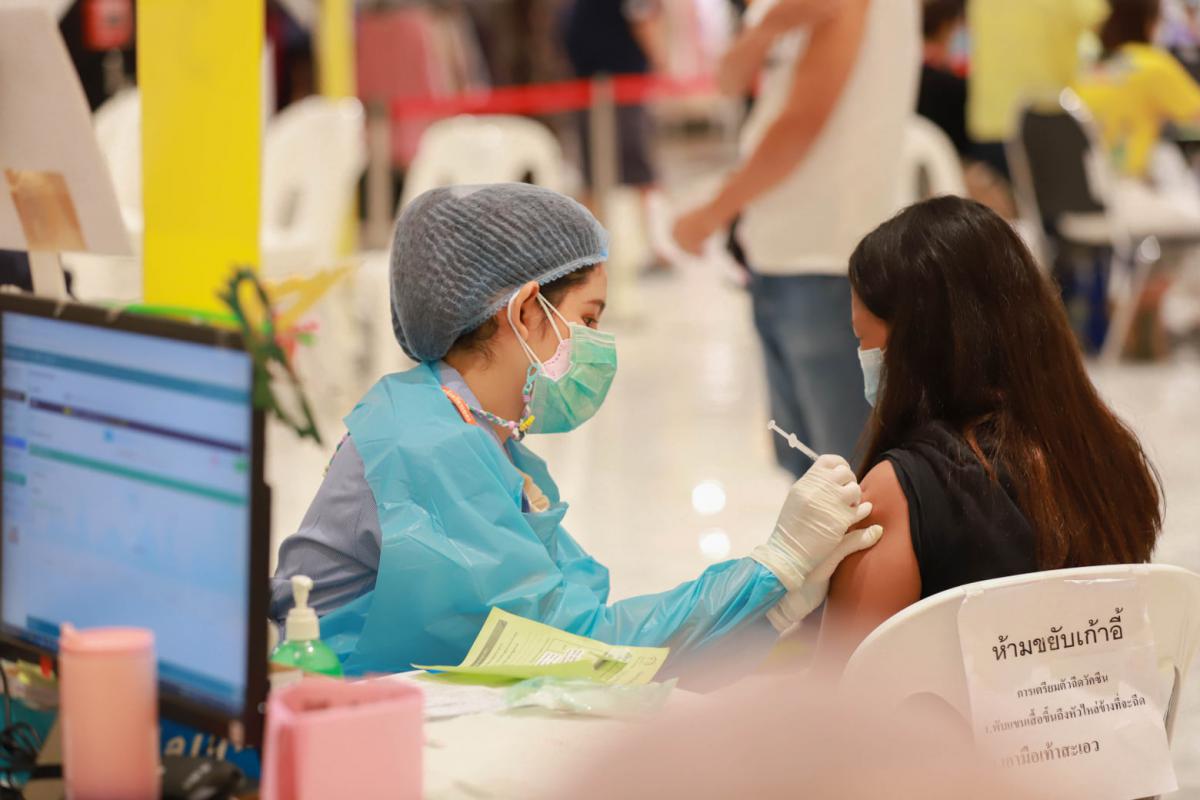 กองสาธารณสุข องค์การบริหารส่วนจังหวัดระยอง ร่วมกับ โรงพยาบาลระยอง ส่งเจ้าหน้าที่พยาบาลช่วยเหลือการฉีดวัคซีน ณ ห้างแหลมทองระยอง