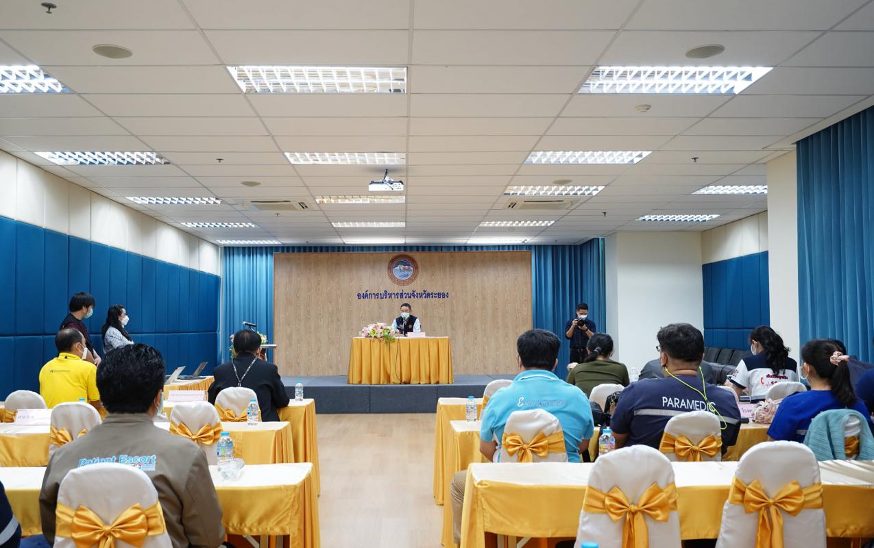 โครงการพัฒนาศูนย์รับเรื่องและจ่ายงานฉุกเฉินการแพทย์ ประจำจังหวัดระยอง โดยการอบรมโครงการนี้จัดขึ้นตั้งแต่วันที่ 24-25 มกราคม 2565 และในวันที่ 24 มกราคม 2565 เวลา 08.30 น. นายแพทย์ชัยวัฒน์ จัตตุพร เลขานุการนายกอบจ.ระยอง ให้เกียรติเป็นประธาน พร้อมด้วย นายไพรทูรย์ รัตนพรวารีสกุล สมาชิกสภาองค์การบริหารส่วนจังหวัดระยอง และเจ้าหน้าที่ที่เกี่ยวข้องได้เข้าร่วมโครงการฯโดยพร้อมเพรียงกัน ซึ่งตลอดระยะเวลาการอบรมโครงการฯ ได้มีเจ้าหน้าที่จากสำนักงานพัฒนาวิทยาศาสตร์และเทคโนโลยีแห่งชาติ (สวทช.) เป็นผู้ที่จะมาบรรยายในหัวข้อเรื่อง Application D1669 และการทดลองปฏิบัติงานสเหมือนจริงภายในศูนย์สั่งการ