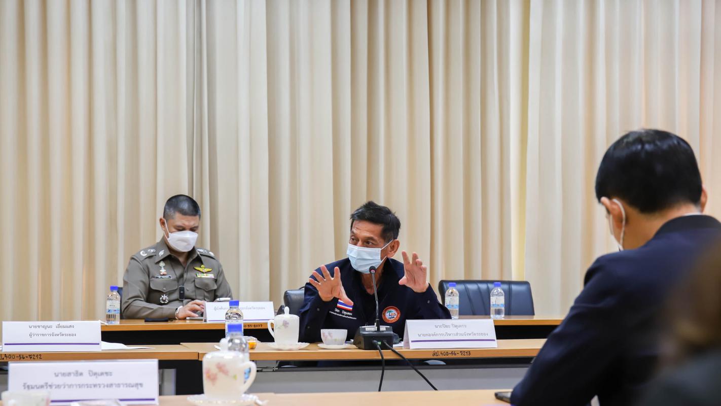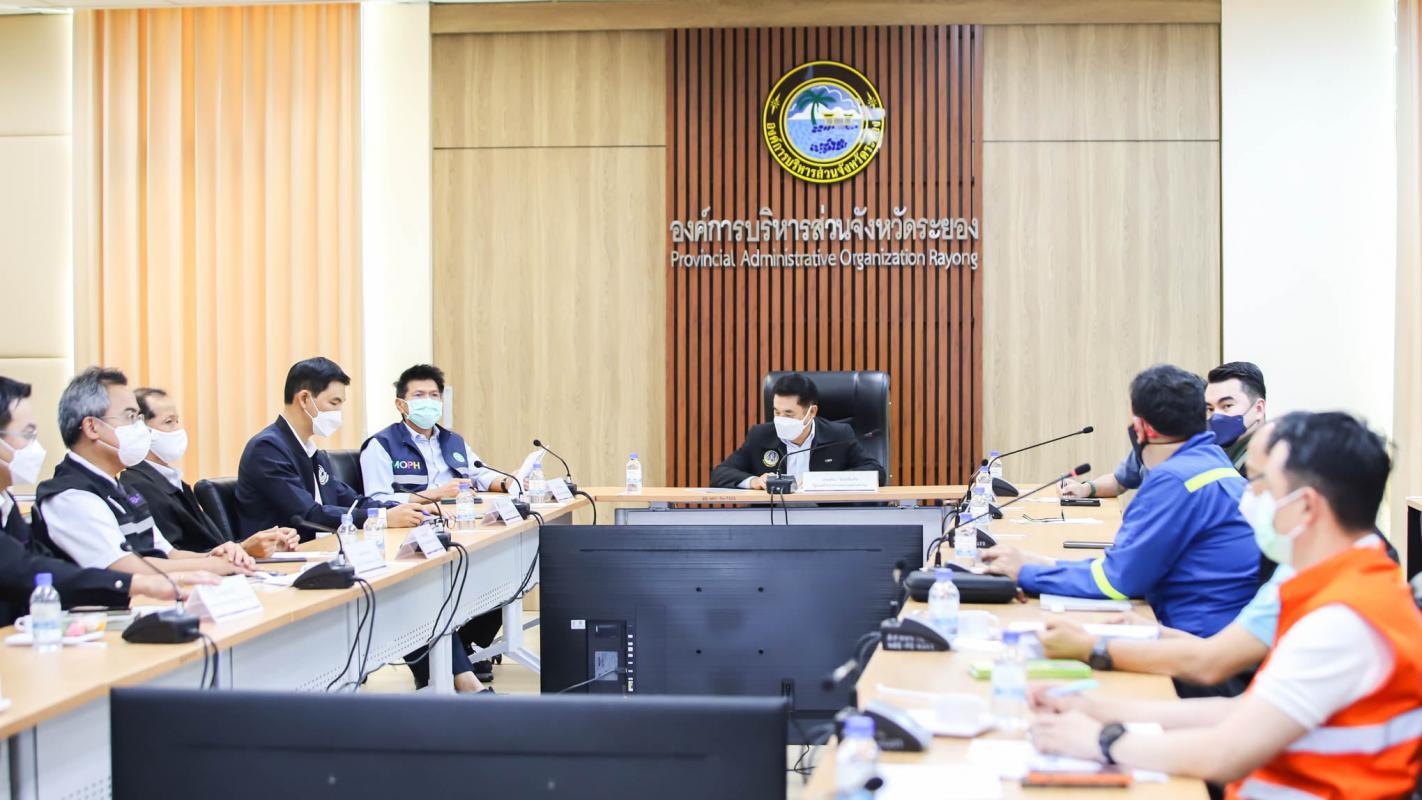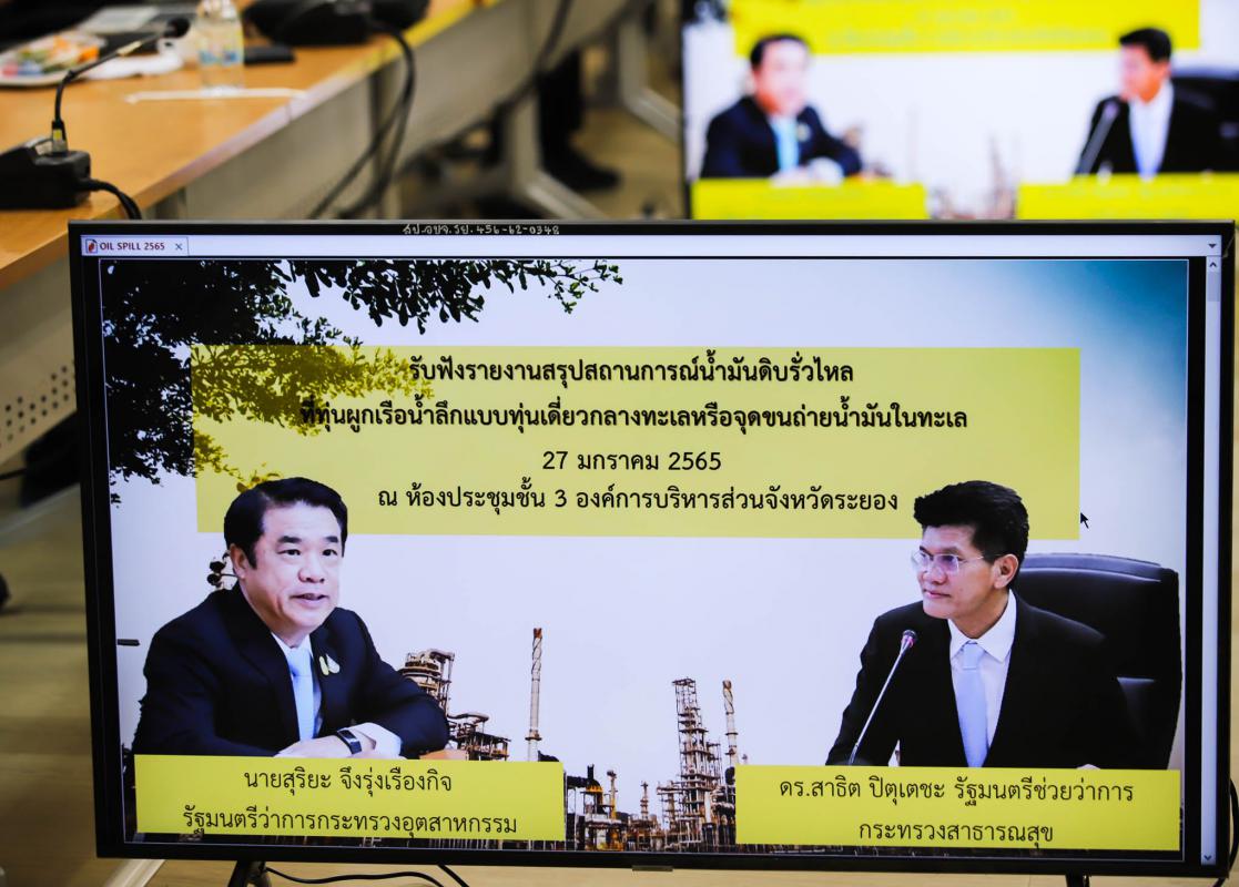 วันที่ 27 มกราคม 2565 เวลา 09.30 น. ณ ห้องประชุม 2 ชั้น 3 อบจ.ระยอง นายสุริยะ จึงรุ่งเรืองกิจ รัฐมนตรีว่าการกระทรวงอุตสาหกรรม พร้อมนายสาธิต ปิตุเตชะ รัฐมนตรีช่วยว่าการกระทรวงสาธารณสุข ได้เดินทางมาติดตามสถานการณ์ปัญหาน้ำมันดิบของ บ.สตาร์ปิโตรเลียม รีไฟน์นิ่ง จำกัด (มหาชน) รั่วไหลจากท่อใต้ทะเลบริเวณทุ่นผูกเรือน้ำลึก หรือจุดขนถ่ายน้ำมันในทะเล (SPM) โดยห่างจากฝั่งประมาณ 20 กิโลเมตร เหตุเกิดเมื่อวันที่ 25 ม.ค.เวลา 21.06 น.ที่ผ่านมา โดยได้ร่วมประชุม และรับฟังการชี้แจงจากส่วนราชการที่เกี่ยวข้อง มีนายชาญนะ เอี่ยมแสง ผู้ว่าราชการจังหวัดระยอง นายปิยะ ปิตุเตชะ นายกองค์การบริหารส่วนจังหวัดระยอง นายวีริศ อัมระปาล ผู้ว่ากนอ. และตัวแทน บริษัทฯเข้าร่วมประชุม