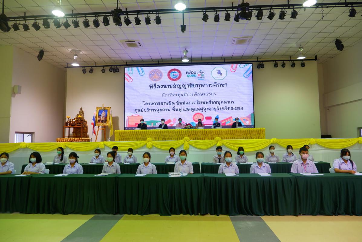 อบจ.ระยอง ได้ดำเนินการจัดตั้งศูนย์บริการสุขภาพ ฟื้นฟู และดูแลผู้สูงอายุในจังหวัดระยอง เพื่อเตรียมความพร้อมของศูนย์บริการสุขภาพฯ ครอบคลุมไปถึงด้านบุคลากรที่จะมาช่วยขับเคลื่อนการดำเนินงานของศูนย์ฯ ให้เป็นรูปธรรม ยั่งยืน มีประสิทธิภาพ และเกิดประโยชน์สูงสุดแก่ประชาชนในจังหวัดระยอง อบจ.ระยอง สมาคมเพื่อนชุมชน มหาวิทยาลัยบูรพา และมูลนิธิตากสิน จึงได้บูรณาการร่วมกันจัดทำโครงการสานฝัน ปั้นน้อง เตรียมพร้อมบุคลากรศูนย์บริการสุขภาพ ฟื้นฟู และดูแลผู้สูงอายุจังหวัดระยองขึ้น ภายใต้โครงการสนับสนุนทุนการศึกษาด้านสาธารณสุข ซึ่งเริ่มดำเนินการมาตั้งแต่ปี 2563-2564 ปัจจุบันมีนิสิตทุนในโครงการฯแล้ว จำนวน 18 คน สำหรับปีการศึกษา 2565 สมาคมเพื่อนชุมชนให้การสนับสนุนเงินทุน จำนวน 20 ทุน เป็นเงิน 5,280,000 บาท และมูลนิธิตากสินระยอง จำนวน 3 ทุน เป็นเงิน 840,000 บาท รวมทั้งสิ้น 23 ทุน เป็นเงิน 6,120,000 บาท