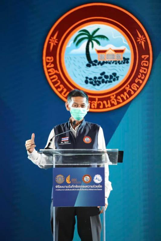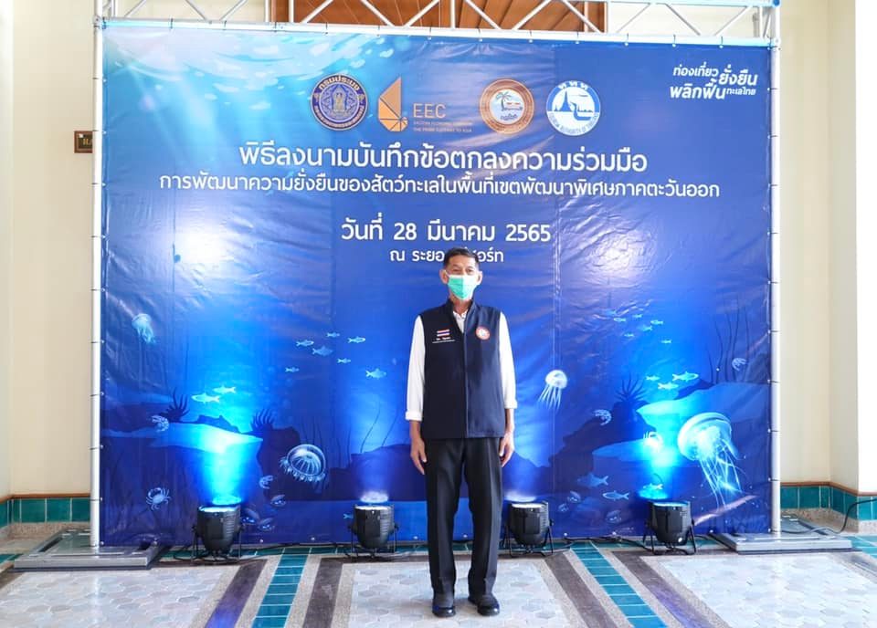 โดยมี ดร. สาธิต ปิตุเตชะ รัฐมนตรีช่วยว่าการกระทรวงสาธารณสุข เป็นประธานในพิธีลงนามบันทึกข้อตกลงความร่วมมือ (MOU) มีดร. คณิศ แสงสุพรรณ เลขาธิการคณะกรรมการนโยบายเขตพัฒนาพิเศษภาคตะวันออก นายปิยะ ปิตุเตชะ นายกองค์การบริหารส่วนจังหวัดระยอง นายเฉลิมชัย สุวรรณรักษ์ อธิบดีกรมประมง นายชาญนะ เอี่ยมแสง ผู้ว่าราชการจังหวัดระยอง นางปราณี จั่นนพรัตน์ รองผู้อำนวยการภูมิภาคภาคตะวันออก การท่องเที่ยวแห่งประเทศไทย นางสุวรรณา โดตี้ ประธานสภาอุตสาหกรรมท่องเที่ยวระยอง และหน่วยงานที่เกี่ยวข้องเข้าร่วมพิธีอย่างพร้อมเพรียง การลงนามความร่วมมือระหว่างสำนักงานคณะกรรมการนโยบายเขตพัฒนาพิเศษ ภาคตะวันออก (สกพอ.) กรมประมง การท่องเที่ยวแห่งประเทศไทย และองค์การบริหารส่วนจังหวัดระยองได้ร่วมกันทำภารกิจสำคัญ ที่จะส่งเสริมการท่องเที่ยวควบคู่กับการฟื้นฟูทรัพยากรทางทะเลคืนความสมบูรณ์ให้กับธรรมชาติ สร้างความยั่งยืนให้กับการท่องเที่ยวควบคู่ไปกับการฟื้นฟูทรัพยากรทางทะเล พร้อมกับสร้างรายได้ที่มั่นคงและยกระดับคุณภาพชีวิตของประชาชนและผู้ประกอบการในพื้นที่ EEC วัตถุประสงค์และการดำเนินงานภายใต้บันทึกข้อตกลงความร่วมมือในครั้งนี้ สกพอ. และ อบจ.ระยอง จะสนับสนุนงบประมาณให้แก่ศูนย์วิจัยและพัฒนาการเพาะเลี้ยงสัตว์น้ำชายฝั่งระยอง เพื่อทำการเพาะพันธุ์ลูกสัตว์ทะเลที่สามารถปล่อยคืนสู่ธรรมชาติ เนื่องจากพบว่าในปัจจุบันปริมาณสัตว์ทะเลที่ถือเป็นแหล่งอาหารและวัตถุดิบรองรับอุตสาหกรรมในพื้นที่ เริ่มลดลงอย่างต่อเนื่อง จำเป็นต้องได้รับการฟื้นฟูโดยเร็ว