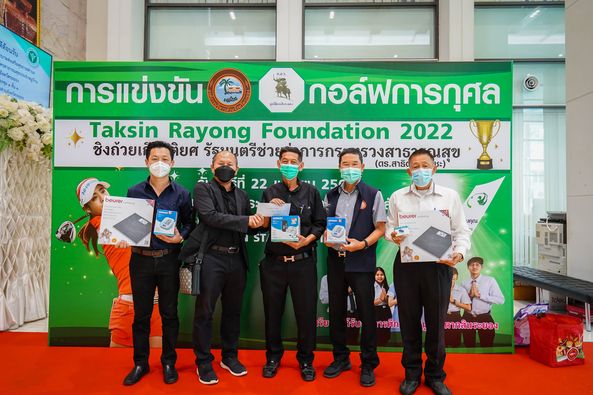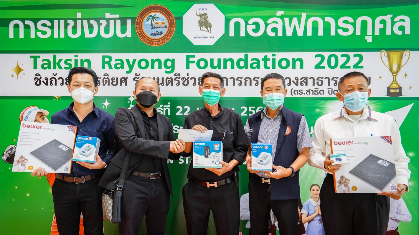 นายก’ช้างรับมอบของสนับสนุนการแข่งขันกอล์ฟการกุศล ชิงถ้วยเกียรติยศรัฐมนตรีช่วยว่าการกระทรวงสาธารณสุข(ดร.สาธิต ปิตุเตชะ) ในวันศุกร์ 22 เมษายน 2565 จัดโดยมูลนิธิตากสินระยอง