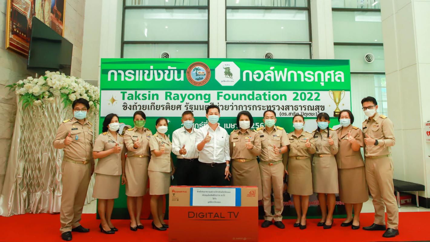 วันที่ 11 เมษายน 2565 เวลา 15.00 น. ณ อบจ.ระยอง นายกิตติ เกียรติ์มนตรี รองนายกองค์การบริหารส่วนจังหวัดระยอง (1) พร้อมด้วย นายอรุณ วิชกิจ ผู้เชี่ยวชาญพิเศษด้านการวางแผนและวิเคราะห์นโยบาย เข้ารับมอบ TV Digital 43 นิ้ว จำนวน 1 เครื่อง โดยมี นางสุพรรณ สุขสันต์รุ่งเรือง ปลัดองค์การบริหารส่วนจังหวัดระยอง พร้อมด้วย นายสุรินทร์ แสงทอง รองปลัดอบจ.ระยอง และ ผู้อำนวยการกอง อบจ.ระยอง ร่วมสนับสนุนของรางวัล เพื่อใช้จัดกิจกรรมการแข่งขันกอล์ฟการกุศล ชิงถ้วยเกียรติยศรัฐมนตรีช่วยว่าการกระทรวงสาธารณสุข(ดร.สาธิต ปิตุเตชะ) ในวันศุกร์ 22 เมษายน 2565 ที่จัดโดยมูลนิธิตากสินระยอง โดยมีวัตถุประสงค์ เพื่อหารายได้เป็นทุนการศึกษาให้แก่นักเรียนแพทย์และพยาบาล เพื่อมาปฏิบัติหน้าที่ ณ ศูนย์บริการฟื้นฟูสุขภาพและดูแลผู้สูงอายุจังหวัดระยองและโรงพยาบาลส่งเสริมสุขภาพประจำตำบล ในสังกัดองค์การบริหารส่วนจังหวัดระยอง และใช้จ่ายด้านอื่นๆ เกี่ยวกับการสาธารณสุข
