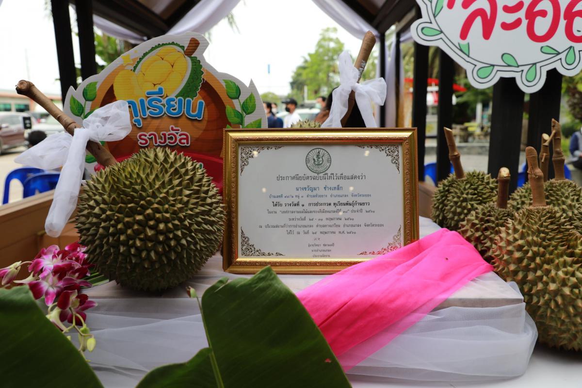 ภายในงานพบกับกิจกรรมการชิมผลไม้ภายใต้คอนเซ็ปท์ "ยกสวนมาชิม” จากสวนทุเรียนละอองฝนที่ได้รับรางวัลชนะเลิศชนิดทุเรียนก้านยาวและผลไม้อื่นๆอีกมากมาย และขอเชิญชวนเที่ยวงานเทศกาลผลไม้และของดีอำเภอเมืองแกลง ประจำปี 2565 จัดขึ้นตั้งแต่วันที่ 13 - 17 พฤษภาคม 2565 ณ ร้านกาแฟอินทนิล ปั๊มน้ำมันบางจากไต๋ปิโตรเลียม ตำบลทางเกวียน อำเภอเมืองแกลง จังหวัดระยอง