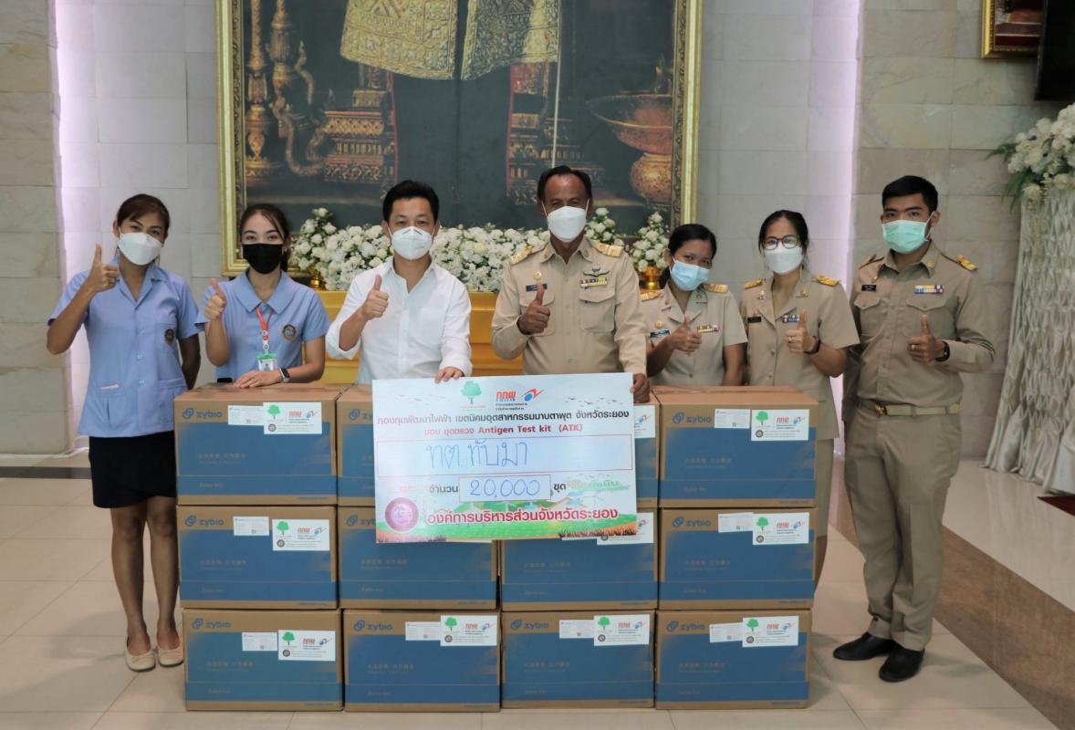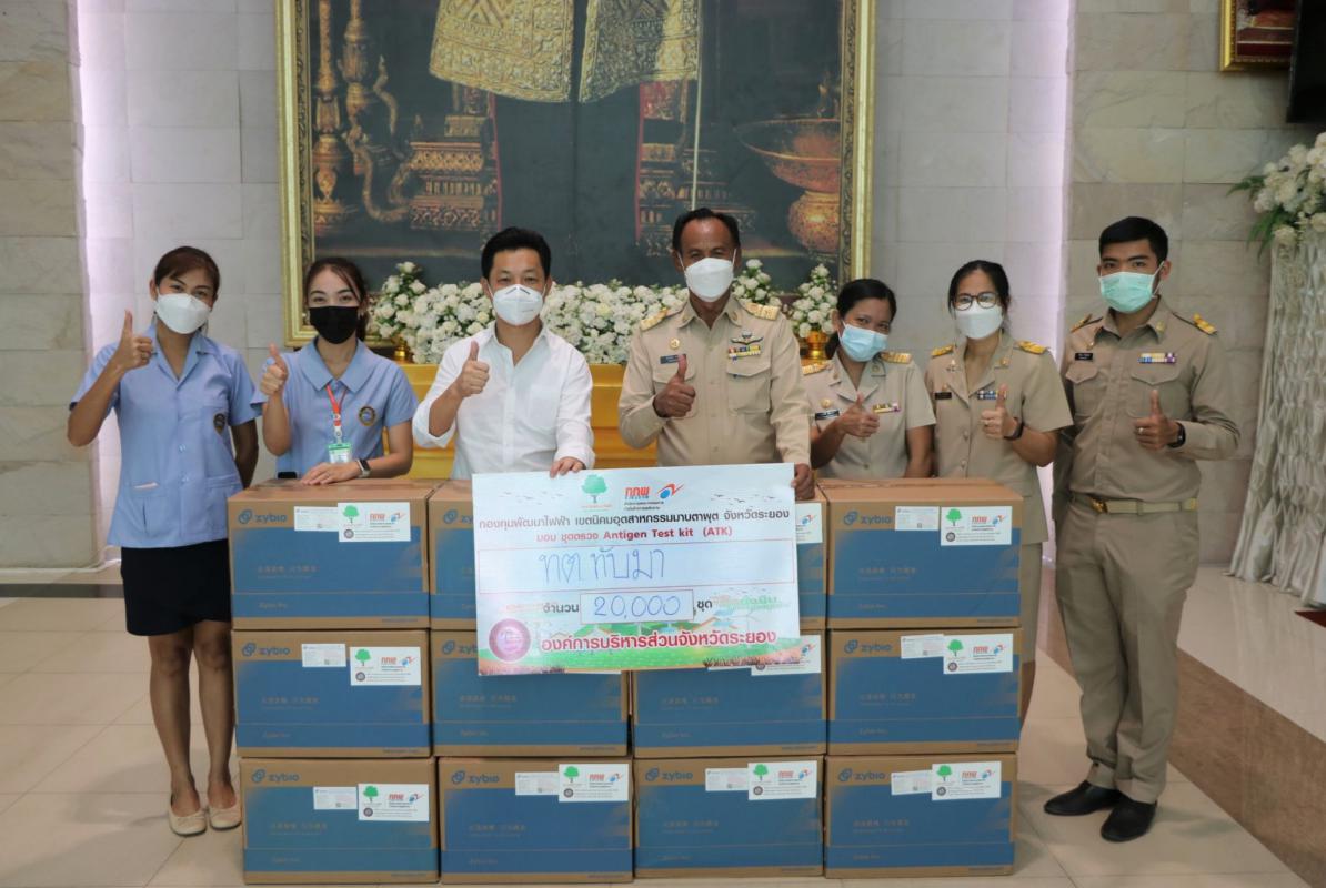 อบจ.ระยองร่วมกับกองทุนไฟฟ้า มอบชุดตรวจ ATK ให้กับเทศบาลตำบลทับมา จำนวน 20,000 ชุด