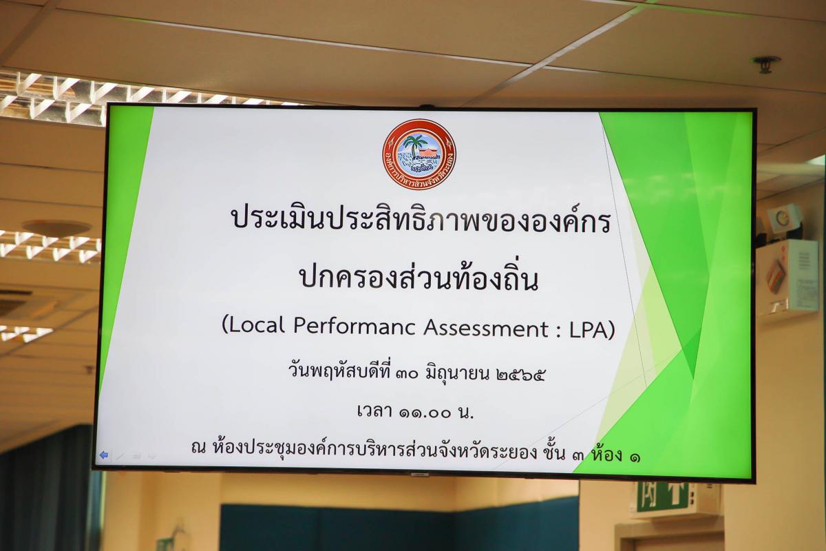 วันที่ 30 มิถุนายน 2565 เวลา 11.00 น. ณ ห้องประชุม 1 ชั้น 3 อบจ.ระยอง องค์การบริหารส่วนจังหวัดระยองได้เข้ารับการประเมินประสิทธิภาพขององค์กรปกครองส่วนท้องถิ่น ประจำปี 2565 (Local Performance Assessment : LPA)ตามแนวทางที่กรมส่งเสริมการปกครองท้องถิ่นกำหนด เพื่อเป็นการประเมินประสิทธิภาพและนิเทศองค์กรปกครองส่วนท้องถิ่นไปสู่การพัฒนา รวมทั้งเป็นการปรับปรุงส่งเสริมการบริการประชาชนได้อย่างมีประสิทธิภาพ