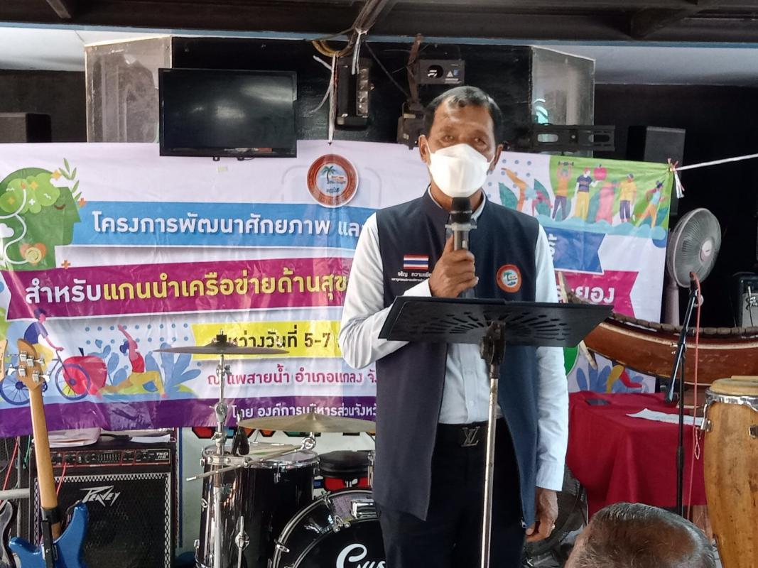 วันที่ 5 กรกฎาคม 2565 เวลา 13.30 น. นายจรัญ ความเพียร เลขานุการนายกองค์การบริหารส่วนจังหวัดระยอง เป็นประธานเปิด “โครงการพัฒนาศักยภาพและเสริมสร้างองค์ความรู้สำหรับแกนนำเครือข่ายด้านสุขภาพในชุมชนจังหวัดระยอง ประจำปีงบประมาณ พ.ศ. 2565” รุ่นที่ 6 โดยมีนางศุภลักษณ์ มงคลฉัตร หัวหน้าฝ่ายบริหารงานทั่วไป เป็นผู้กล่าวถึงวัตถุประสงค์ของการจัดโครงการในครั้งนี้ ซึ่งจัดอบรมตั้งแต่วันที่ 5-7 กรกฎาคม 2565 จากกลุ่มอาสาสมัครสาธารณสุขอำเภอแกลง จำนวน 100 คน ณ แพสายน้ำ อำเภอแกลง จังหวัดระยอง ซึ่งผู้เข้ารับการอบรมจะได้รับฟังการบรรยายจากคณะวิทยากรจากสาธารณสุขอำเภอแกลง และวิทยากรจากกองร้อยตำรวจตระเวนชายแดนที่ 12 กองกำกับการตำรวจตระเวนชายแดนที่ 11 จังหวัดจันทบุรี