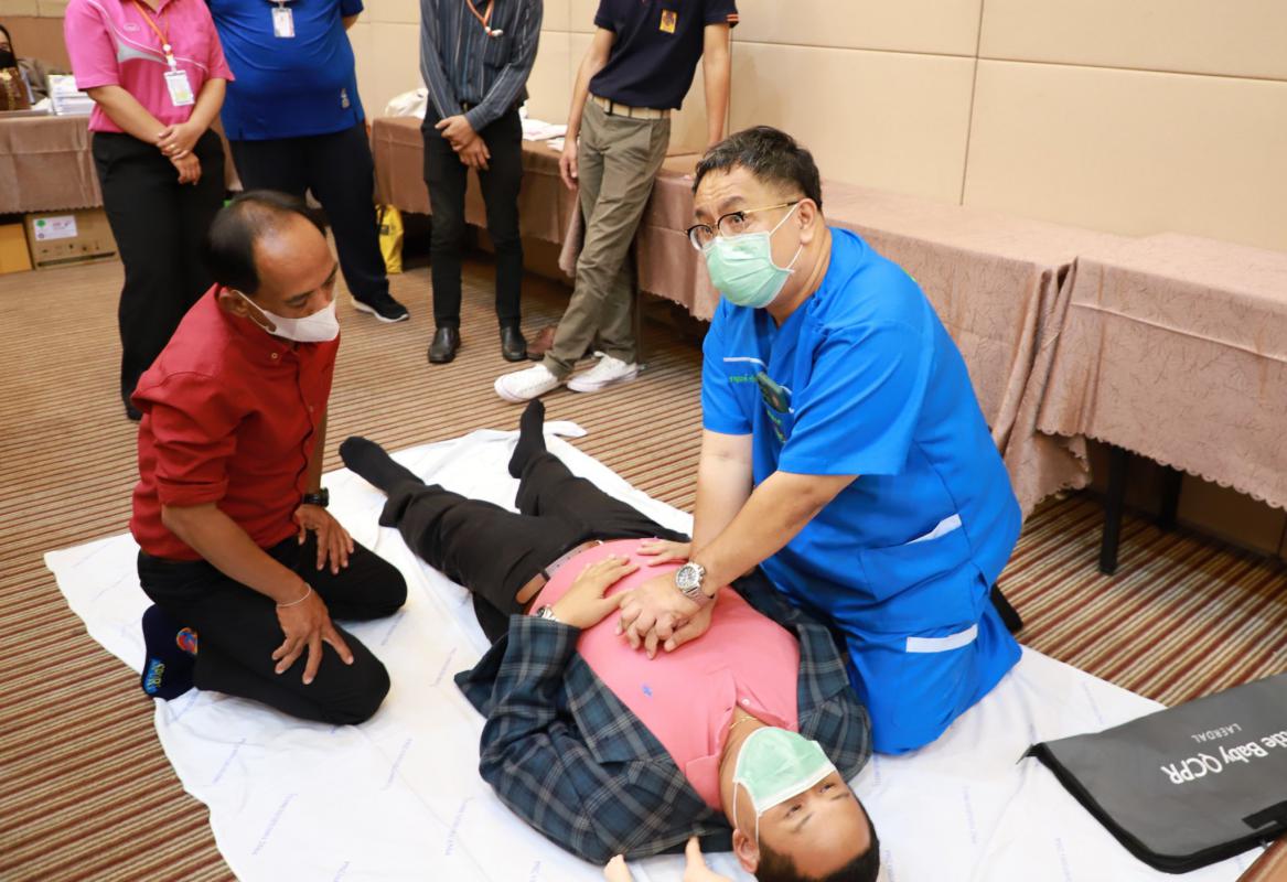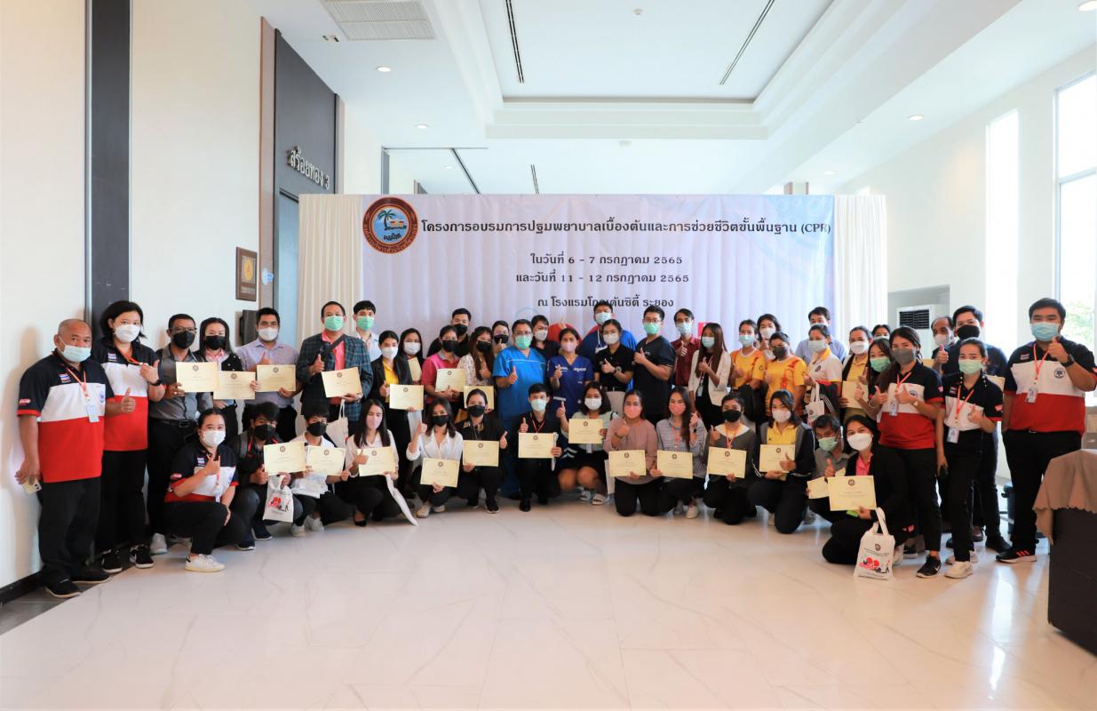 วันที่ 6 กรกฎาคม 2565 เวลา 9.00 น. นายปิยะ ปิตุเตชะ นายกองค์การบริหารส่วนจังหวัดระยอง พร้อมด้วยนายมนตรี ชนะชัยวิบูลวัฒน์ ที่ปรึกษานายก อบจ.ระยอง, นายชัยวัฒน์ จัตตุพร เลขานุการนายก อบจ.ระยอง, นางสุพรรณี สุขสันต์รุ่งเรือง ปลัดอบจ.ระยอง, วิทยากรและทีมงานจากโรงพยาบาลระยอง, ผู้เข้าอบรมรุ่นที่ 1 จำนวน 50 คนและเจ้าหน้าที่ที่เกี่ยวข้องเข้าร่วมโครงการอบรมปฐมพยาบาลเบื้องต้น และการช่วยชีวิตขั้นพื้นฐาน (CPR) อย่างพร้อมเพรียง ณ ห้องสร้อยทอง โรงแรมโกลเด้น ซิตี้ ระยอง