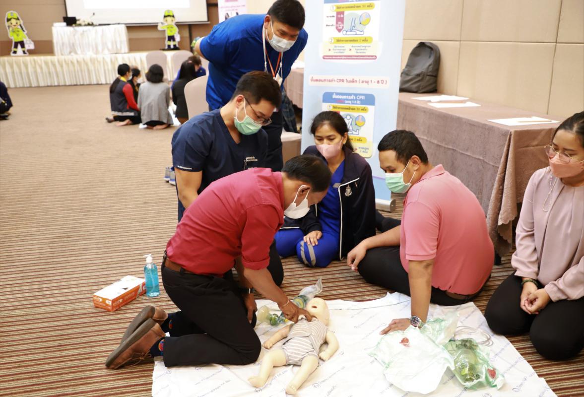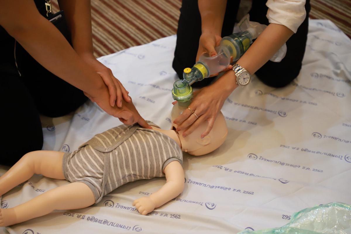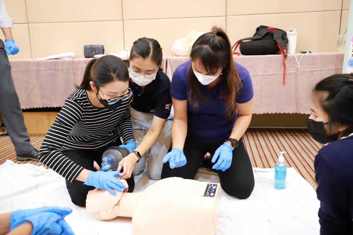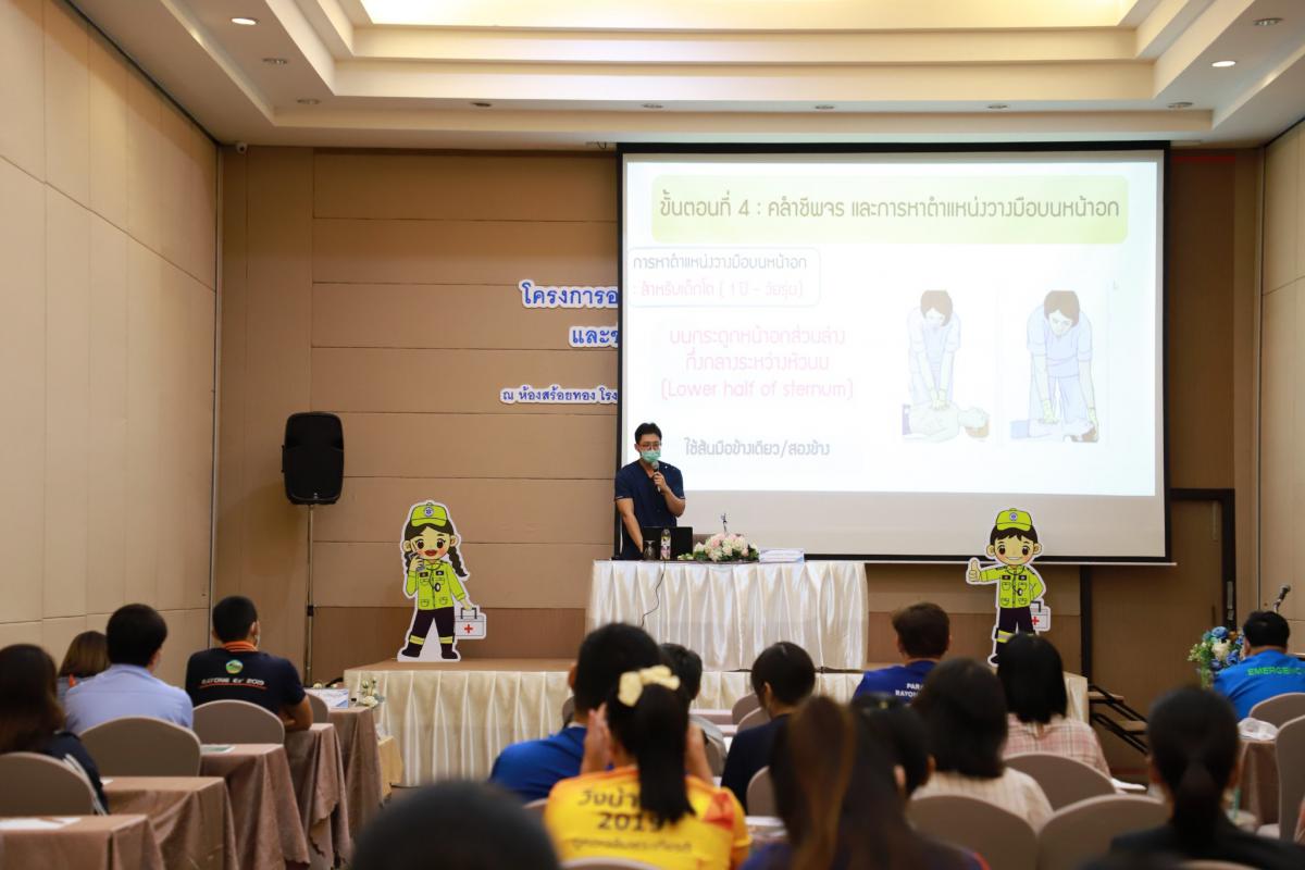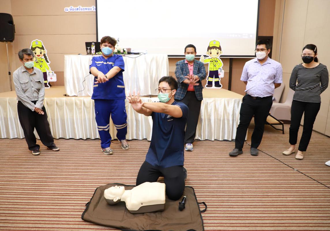 โดยในช่วงเช้าเป็นการรับฟังการบรรยายในหัวข้อ “การปฐมพยาบาลเบื้องต้น (First aid) และการช่วยชีวิตขั้นพื้นฐาน (BLS)” และฝึกปฏิบัติตามฐานในช่วงบ่ายจากแพทย์และทีมงานจากโรงพยาบาลระยอง ซึ่งโครงการในครั้งนี้จัดขึ้นเพื่อให้ผู้เข้าอบรมทุกท่านสามารถให้การปฐมพยาบาลเบื้องต้นและช่วยชีวิตขั้นพื้นฐาน (CPR) รวมถึงการใช้เครื่องกระตุ้นไฟฟ้าหัวใจอัตโนมัติในการช่วยเหลือผู้ที่เจ็บป่วยฉุกเฉินได้ทั้งในผู้ใหญ่และเด็กได้อย่างถูกต้อง