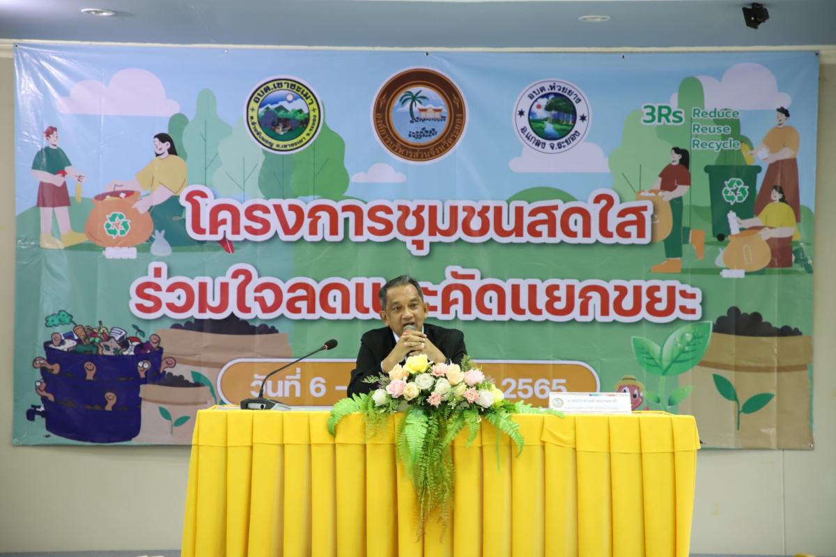 วันที่ 6 กรกฎาคม 2565 เวลา 09.00 น. กองสาธารณสุข อบจ.ระยอง ได้จัด “โครงการชุมชนสดใส ร่วมใจลดและคัดแยกขยะ” ณ องค์การบริหารส่วนตำบลเขาชะเมา โดยมีนายประสานต์ พฤกษาชาติ รองนายกองค์การบริหารส่วนจังหวัดระยอง เป็นประธานเปิดโครงการฯ และนายสุริยะ ศิริวัฒน์ รก.ผอ.กองสาธารณสุข เป็นผู้กล่าวถึงวัตถุประสงค์ของการจัดโครงการดังกล่าว ซึ่งผู้เข้าร่วมโครงการเป็นกลุ่มประชาชนจากองค์การบริหารส่วนตำบลเขาชะเมา จำนวน 100 คน โดยผู้เข้ารับการอบรมจะได้รับฟังการบรรยายจากนายสายัณห์ รุ่งเรือง ซึ่งเป็นประธานชุมชนต้นแบบในการบริหารจัดการขยะที่ได้รับรางวัลในระดับประเทศ โดยผู้เข้ารับการอบรมได้เรียนรู้ถึงวิธีการทำน้ำหมักชีวภาพ การทำถังดำรักษ์โลกกำจัดขยะอินทรีย์ การทำปุ๋ยหมักจากขยะอินทรีย์ที่อยู่ในครัวเรือน และกิจกรรมการเพาะเลี้ยงไส้เดือน