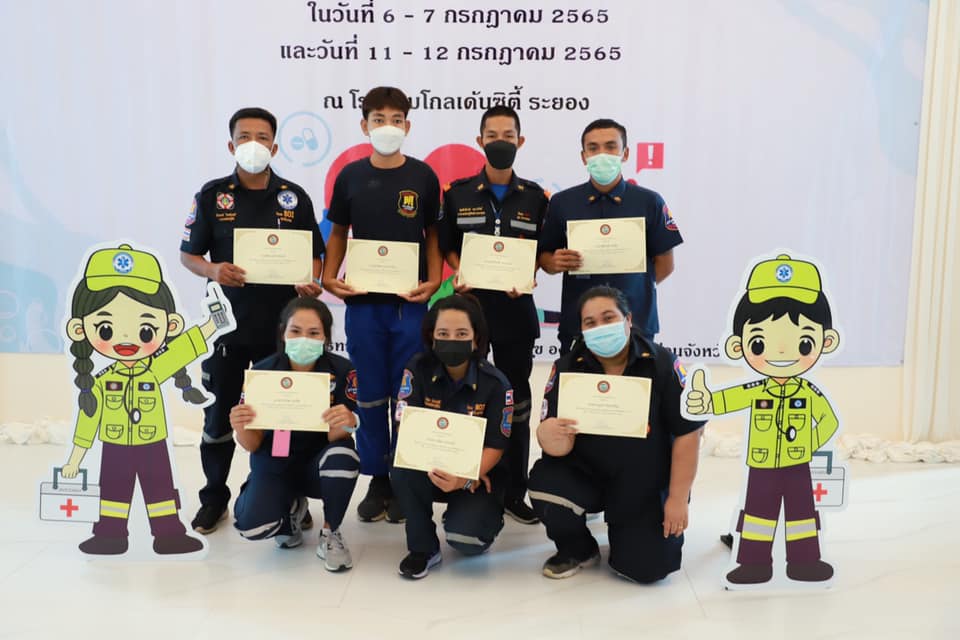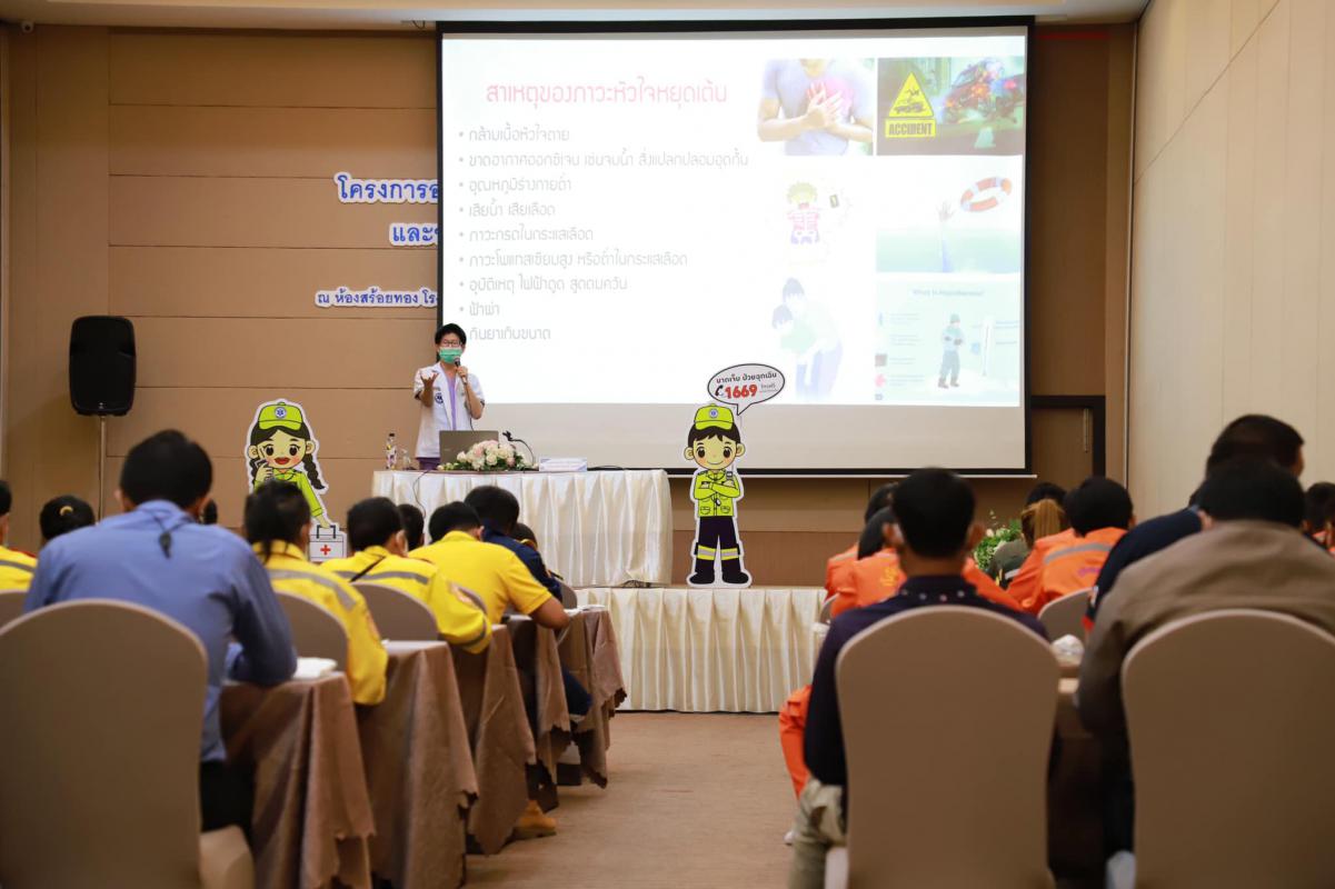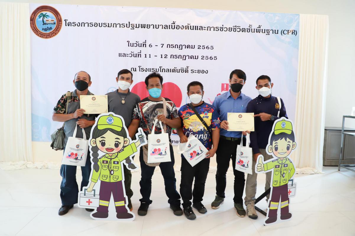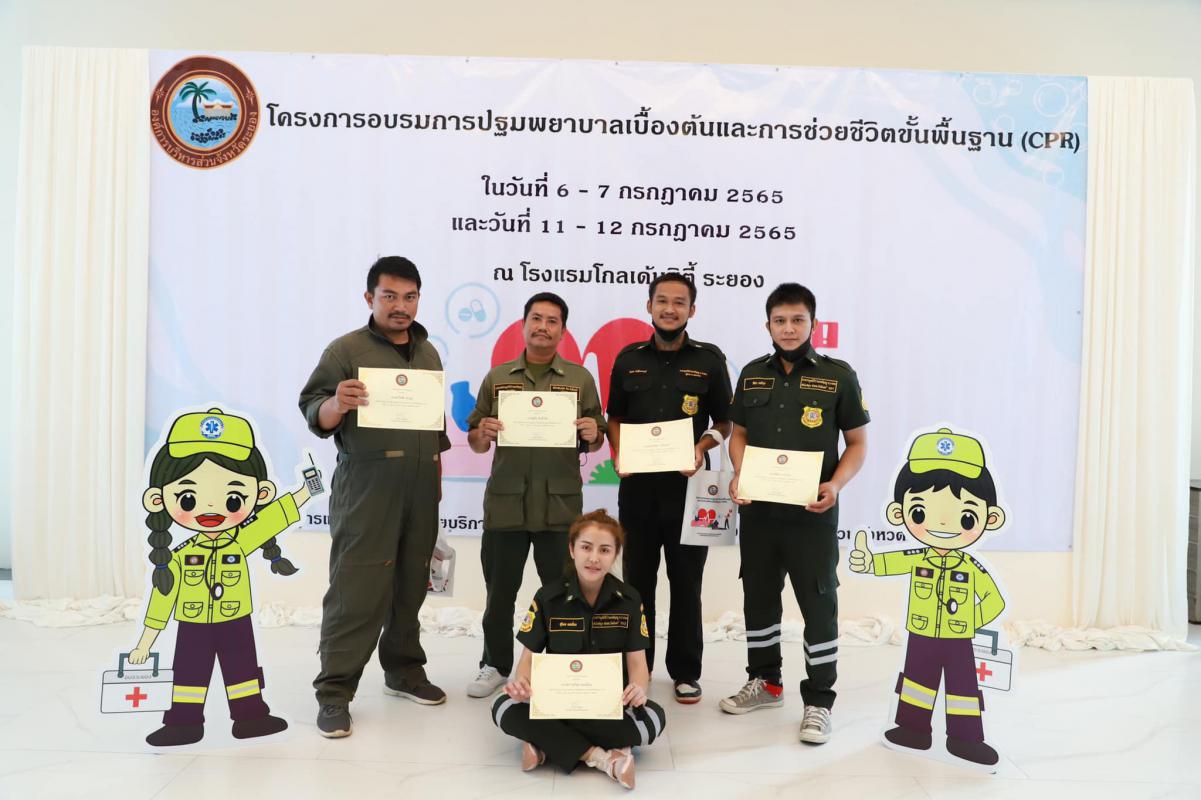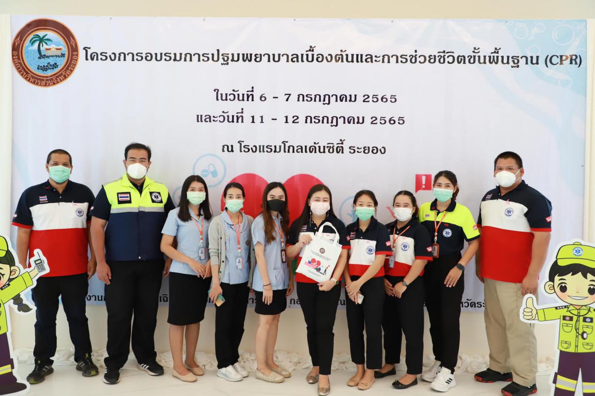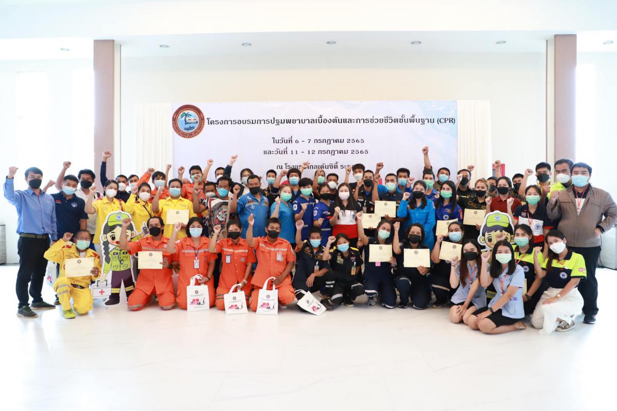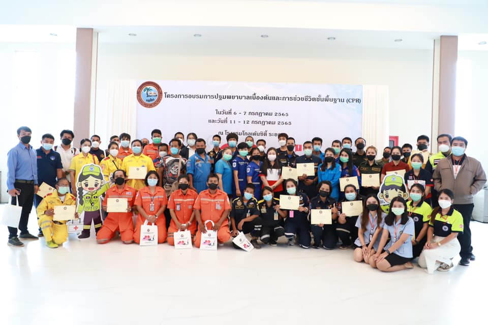 วันที่ 11 กรกฎาคม 2565 เวลา 9.00 น. กองสาธารณะสุข จัดโครงการอบรมปฐมพยาบาลเบื้องต้น และการช่วยชีวิตขั้นพื้นฐาน (CPR) รุ่นที่ 2 ณ ห้องสร้อยทอง โรงแรมโกลเด้น ซิตี้ ระยอง โดยในช่วงเช้าเป็นการรับฟังการบรรยายในหัวข้อ “การปฐมพยาบาลเบื้องต้น (First aid) และการช่วยชีวิตขั้นพื้นฐาน (BLS)” และฝึกปฏิบัติตามฐานในช่วงบ่ายจากแพทย์และทีมงานจากโรงพยาบาลระยอง ซึ่งโครงการในครั้งนี้จัดขึ้นเพื่อให้ผู้เข้าอบรมทุกท่านสามารถให้การปฐมพยาบาลเบื้องต้นและช่วยชีวิตขั้นพื้นฐาน (CPR) ได้อย่างถูกต้อง สามารถใช้เครื่องกระตุ้นไฟฟ้าหัวใจอัตโนมัติในการช่วยเหลือผู้ที่เจ็บป่วยฉุกเฉินได้