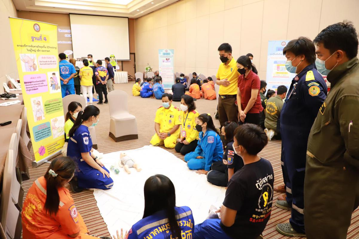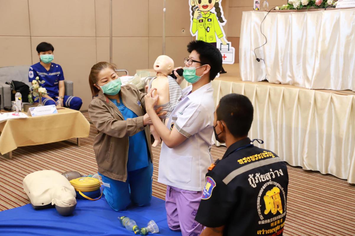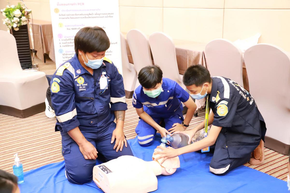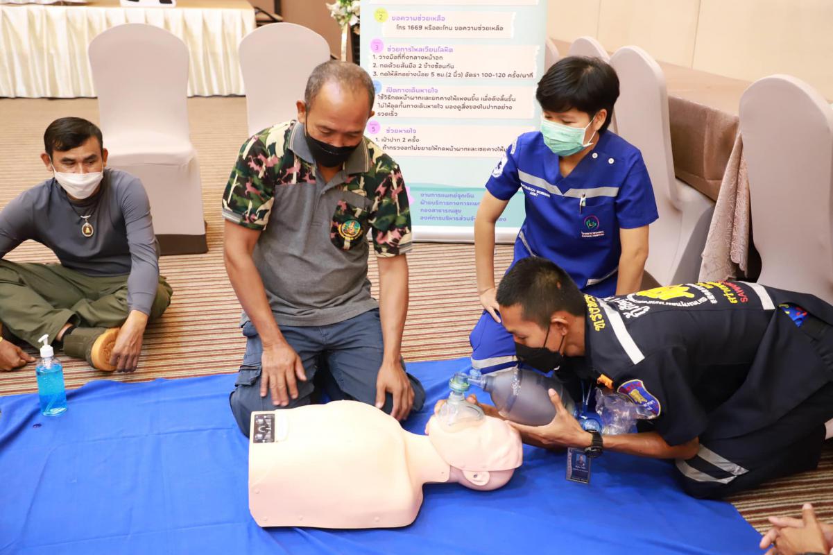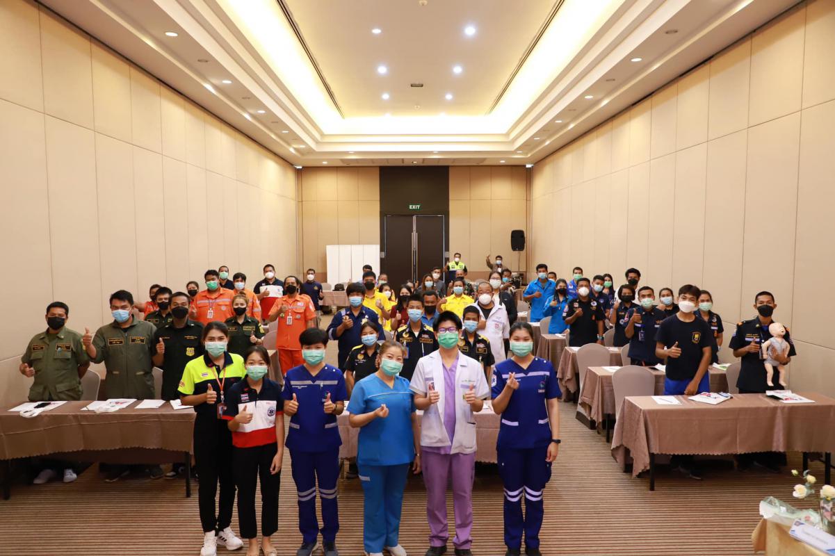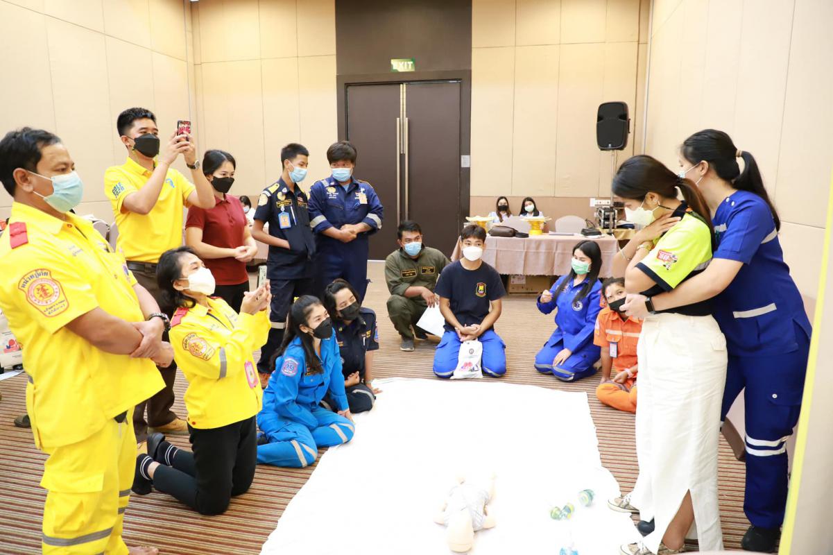 วันที่ 11 กรกฎาคม 2565 เวลา 9.00 น. กองสาธารณะสุข จัดโครงการอบรมปฐมพยาบาลเบื้องต้น และการช่วยชีวิตขั้นพื้นฐาน (CPR) รุ่นที่ 2 ณ ห้องสร้อยทอง โรงแรมโกลเด้น ซิตี้ ระยอง โดยในช่วงเช้าเป็นการรับฟังการบรรยายในหัวข้อ “การปฐมพยาบาลเบื้องต้น (First aid) และการช่วยชีวิตขั้นพื้นฐาน (BLS)” และฝึกปฏิบัติตามฐานในช่วงบ่ายจากแพทย์และทีมงานจากโรงพยาบาลระยอง ซึ่งโครงการในครั้งนี้จัดขึ้นเพื่อให้ผู้เข้าอบรมทุกท่านสามารถให้การปฐมพยาบาลเบื้องต้นและช่วยชีวิตขั้นพื้นฐาน (CPR) ได้อย่างถูกต้อง สามารถใช้เครื่องกระตุ้นไฟฟ้าหัวใจอัตโนมัติในการช่วยเหลือผู้ที่เจ็บป่วยฉุกเฉินได้