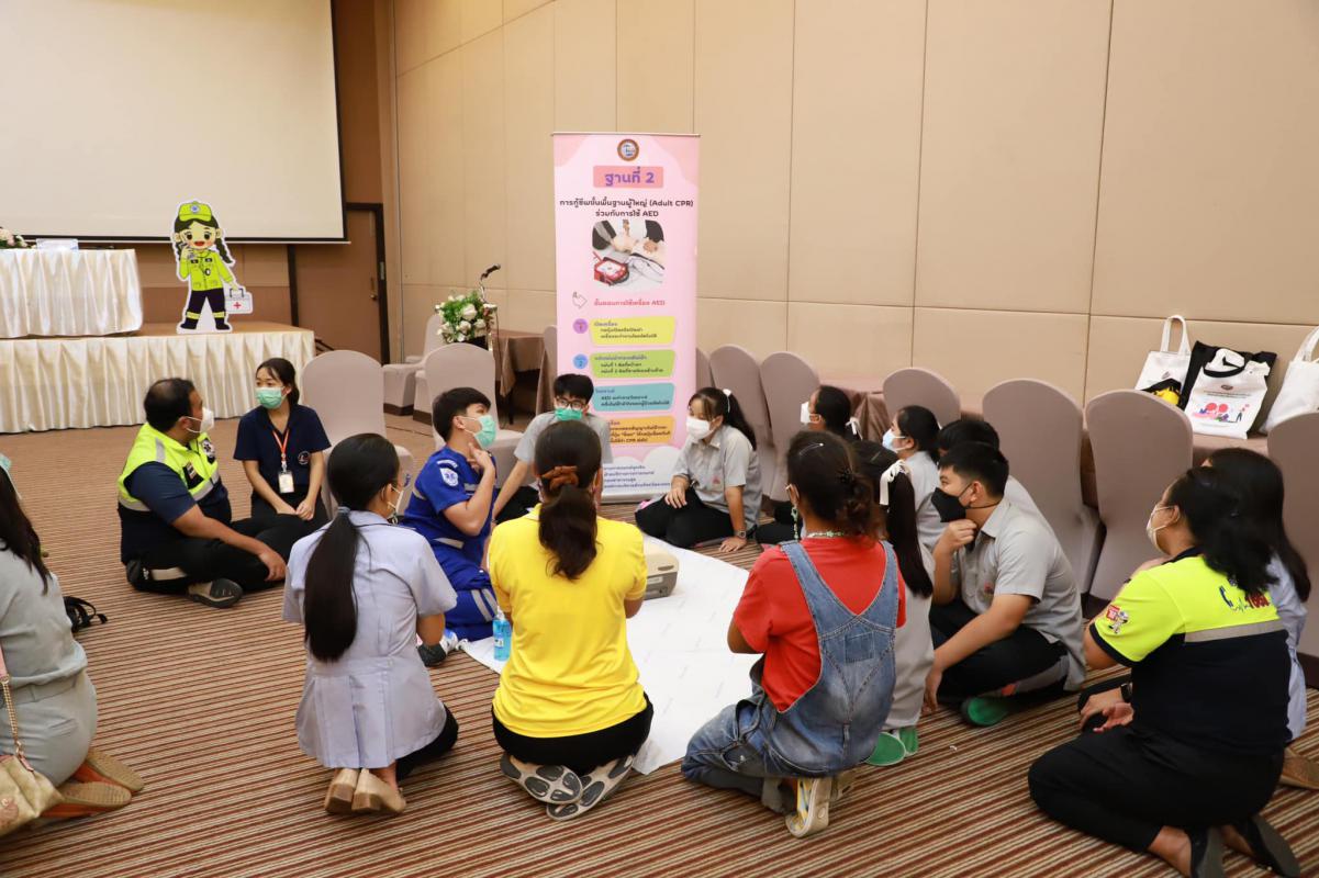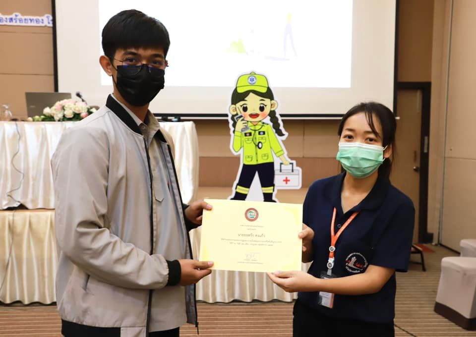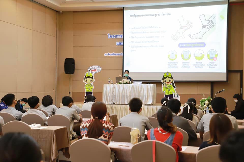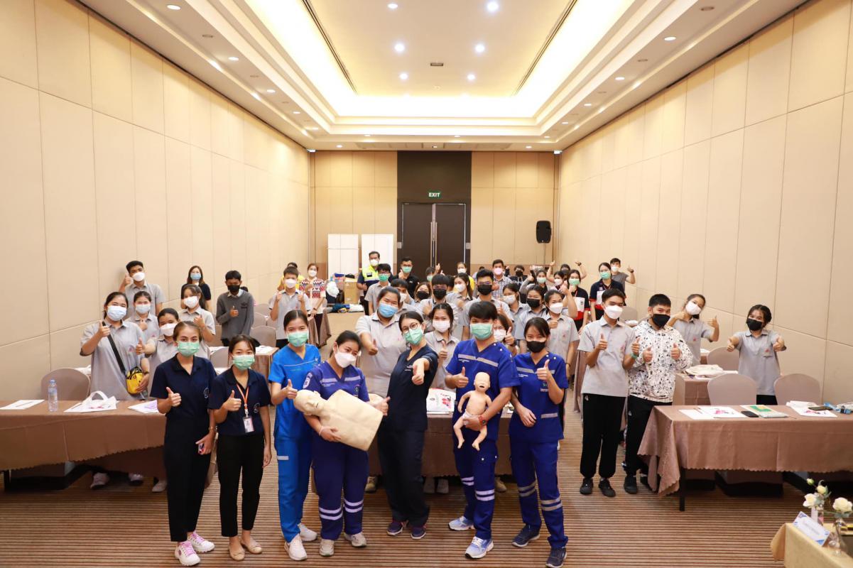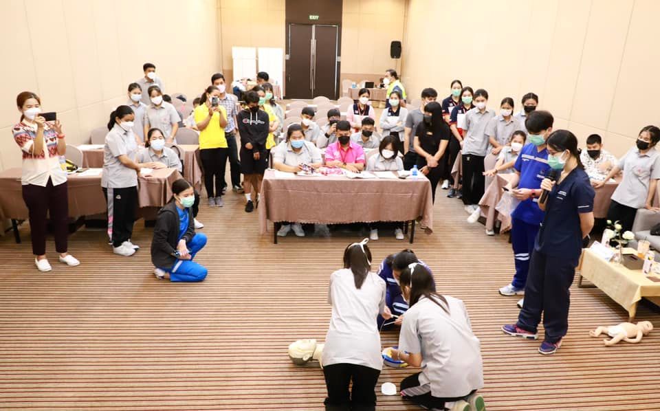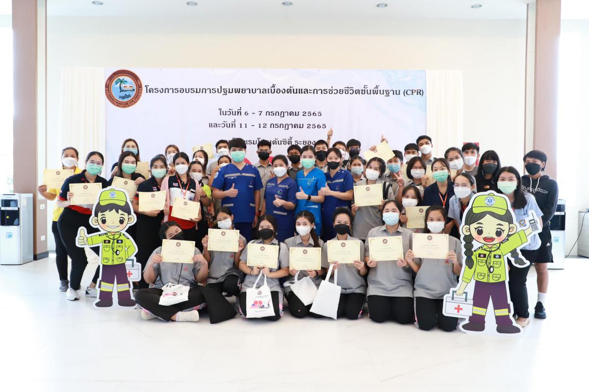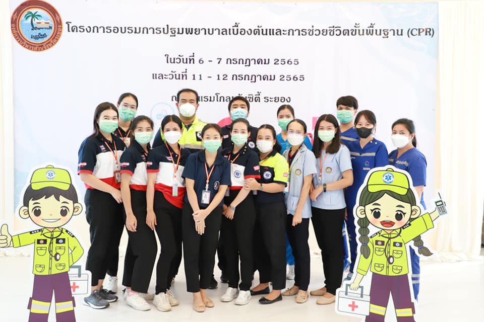 วันที่ 12 กรกฎาคม 2565 เวลา 09.00 น. กองสาธารณะสุข จัดโครงการอบรมปฐมพยาบาลเบื้องต้น และการช่วยชีวิตขั้นพื้นฐาน (CPR) รุ่นที่ 4 ณ ห้องสร้อยทอง โรงแรมโกลเด้น ซิตี้ ระยอง โดยในช่วงเช้าเป็นการรับฟังการบรรยายในหัวข้อ “การปฐมพยาบาลเบื้องต้น (First aid) และการช่วยชีวิตขั้นพื้นฐาน (BLS)” และฝึกปฏิบัติตามฐานในช่วงบ่ายจากแพทย์และทีมงานจากโรงพยาบาลระยอง ซึ่งโครงการในครั้งนี้จัดขึ้นเพื่อให้ผู้เข้าอบรมทุกท่านสามารถให้การปฐมพยาบาลเบื้องต้นและช่วยชีวิตขั้นพื้นฐาน (CPR) ได้อย่างถูกต้อง สามารถใช้เครื่องกระตุ้นไฟฟ้าหัวใจอัตโนมัติในการช่วยเหลือผู้ที่เจ็บป่วยฉุกเฉินได้