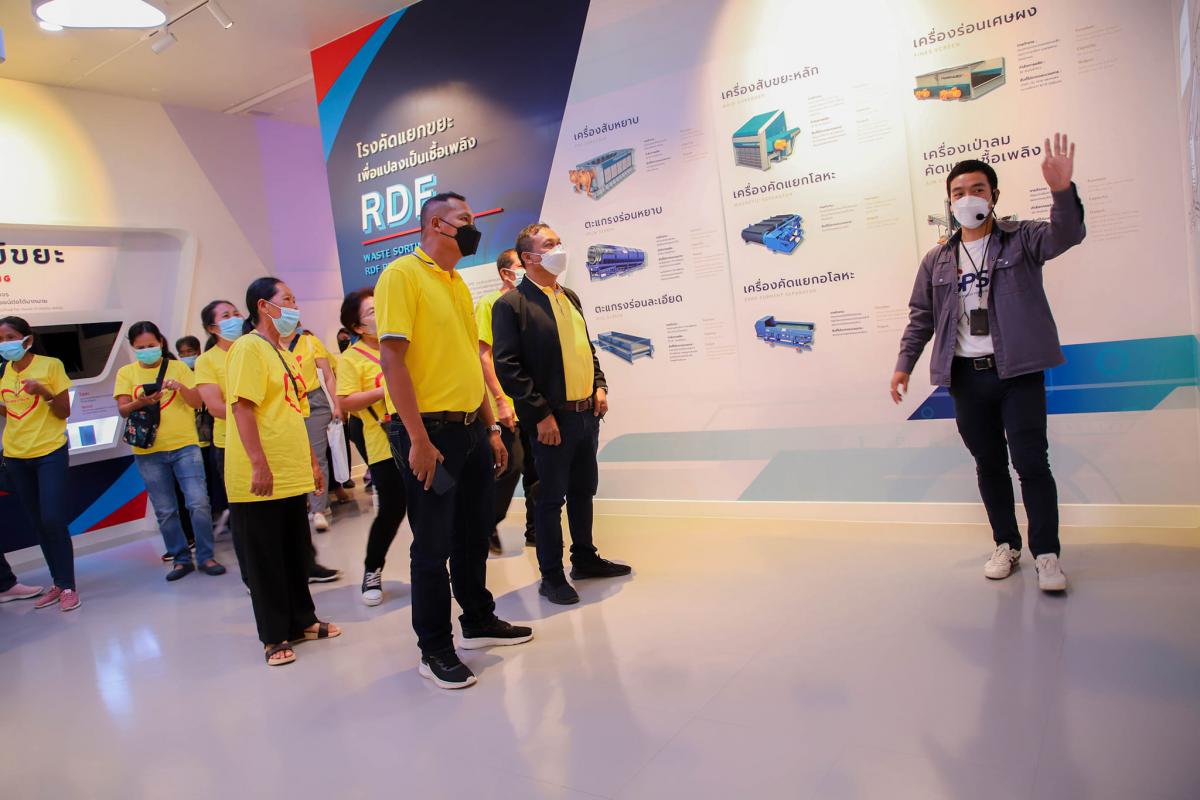 ซึ่งองค์การบริหารส่วนจังหวัดระยอง ได้มีการบริหารจัดการปัญหาขยะมูลฝอยแบบครบวงจร ซึ่งขยะมูลฝอยจากทุกชุมชนทั่วทั้งจังหวัดระยองจะถูกขนย้ายเข้ามาที่ศูนย์ฯวันละประมาณ 1,000 ตัน แยกเป็น 3 ส่วนคือ ส่วนที่หนึ่งขยะที่ขายได้เลย เช่น ขวดน้ำพลาสติก ส่วนที่สอง คือขยะที่สามารถใช้เป็นเชื้อเพลิงผลิตพลังงาน หรือ Refuse Derived Fuel หรือขยะ RDF (ขยะเชื้อเพลิง) และสุดท้ายคือ ขยะจากสารอินทรีย์ต่างๆ เช่น เศษผัก เศษอาหาร ใบไม้ เปลือกผลไม้ทุกชนิด ซึ่งจะมีกระบวนการหมักเป็นแก๊สแล้วเอากากที่เหลือมาทำเป็นปุ๋ย ถือว่าเป็นการนำขยะกลับมาใช้ประโยชน์ใหม่อย่างคุ้มค่าสูงสุด เมื่อได้รับการฟังบรรยายเสร็จสิ้น คณะศึกษาดูงานได้เข้าเยี่ยมชมระบบการทำงานการคัดแยกขยะภายในศูนย์กำจัดขยะมูลฝอยแบบครบวงจร พร้อมทั้งได้เห็นกรรมวิธีในการกำจัดขยะและขั้นตอนในการปฏิบัติงานต่างๆ
