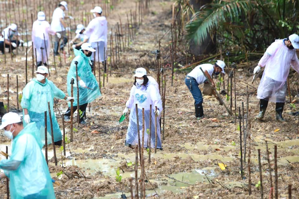 บริษัท เอสซีจีซี เคมิคอลส์ จำกัด (มหาชน) หรือ SCGC ได้ดำเนินธุรกิจควบคู่กับการดูแลสิ่งแวดล้อมอย่างยั่งยืน ตามแนวทาง ESG (Environmental Social and Governance) เพื่อช่วยลดวิกฤติภาวะโลกร้อนและการเปลี่ยนแปลงสภาพภูมิอากาศ รวมทั้งการเพิ่มพื้นที่สีเขียว โดยร่วมมือกับภาครัฐ ภาคประชาสังคม และภาคส่วนต่างๆ ที่เกี่ยวข้อง รวมทั้งจิตอาสา เดินหน้าปลูกต้นไม้ 1 ล้านต้น ด้วยการปลูกป่าชายเลนและป่าบก การเพาะต้นกล้าเพื่อจัดสรรให้พื้นที่ที่ขาดแคลน รวมไปถึงการปลูกป่าในใจคน ด้วยแนวคิดคนดูแลป่า ป่าดูแลคน สู่วิถีสังคมคาร์บอนต่ำตามเป้าหมายของประเทศ เพื่อโลกและสังคมที่ยั่งยืนต่อไป ภายในงานมีการรับชมวิดีทัศน์เกี่ยวกับการดำเนินธุรกิจของ SCGC ควบคู่กับแนวทางในการดูแลสิ่งแวดล้อมอย่างยั่งยืนมีนิทรรศการ “ปลูก เพาะ รัก” และ นิทรรศการจากเครือข่ายชุมชนหลังจากนั้นได้ร่วมกันปลูกต้นไม้จำนวน 1,000 ต้น