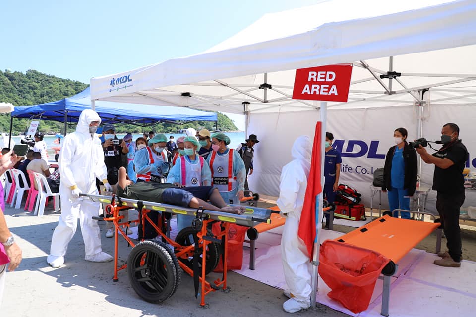 จังหวัดระยองโดย องค์การบริหารส่วนจังหวัดระยอง ร่วมกับสถาบันการแพทย์ฉุกเฉินแห่งชาติ สำนักงานป้องกันและบรรเทาสาธารณภัยจังหวัดระยอง ทัพเรือภาคที่ 1 อุทยานแห่งชาติเขาแหลมหญ้า - หมู่เกาะเสม็ด สำนักงานสาธารณสุขจังหวัดระยอง โรงพยาบาลระยอง รวมถึงหน่วยงานอื่นๆ ที่เกี่ยวข้อง ได้จัดทำโครงการพัฒนาระบบบัญชาการเหตุการณ์ในสถานการณ์ฉุกเฉิน (ICS) และมีการฝึกซ้อมแผนปฏิบัติการในภาวะฉุกเฉิน ซึ่งมีผู้เข้าร่วมงาน จำนวน 250 คน และมีการนำเรือ อากาศยาน รถดับเพลิง และรถพยาบาล เข้าร่วมการฝึกซ้อมแผนปฏิบัติการในภาวะฉุกเฉิน โดยเป็นการจำลองสถานการณ์ ดังนี้