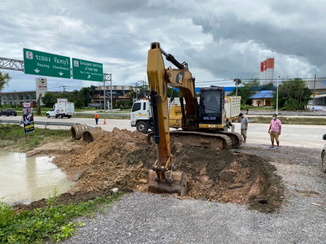 อัพเดทสถานการณ์ อบจ.ระยอง สนับสนุนเครื่องจักรกล เพื่อแก้ไขปัญหาเร่งระบายน้ำ และสิ่งกีดขวางทางจราจรในพื้นที่ประสบภัย บริเวณถนน 36 บริเวณตำบลตะพง และบริเวณอ่างเก็บน้ำบ้านแลง