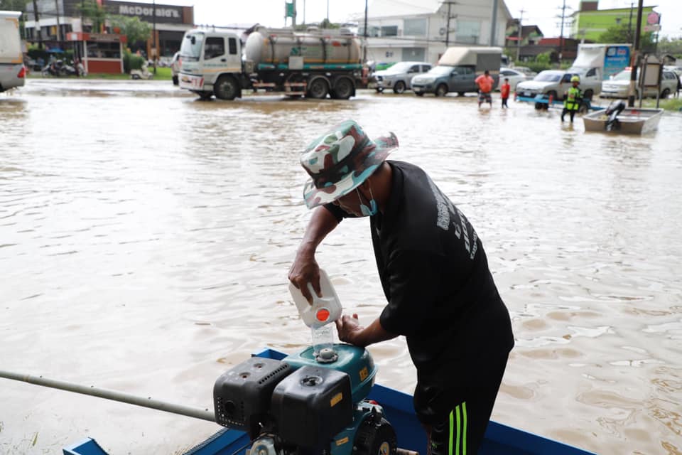 อัพเดทสถานการณ์การช่วยเหลือผู้ประสบภัยน้ำท่วม อบจ.ระยองให้การสนับสนุนน้ำมันเบนซิน และข้าวกล่อง แก่ทางหน่วยงานมูลนิธิกู้ภัยอำเภอปลวกแดง