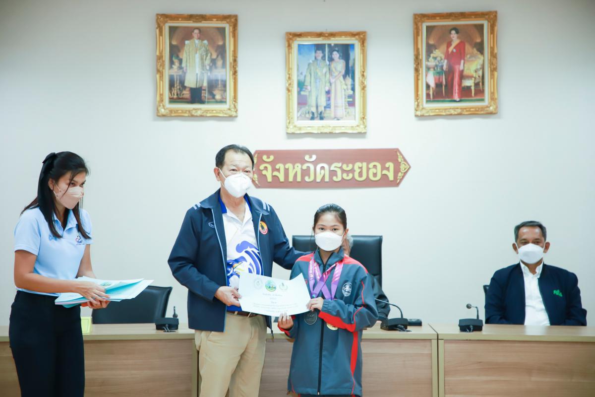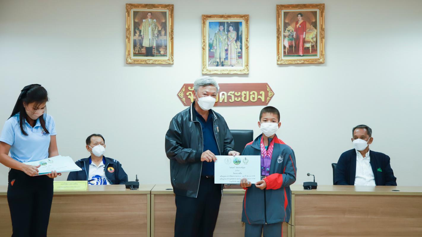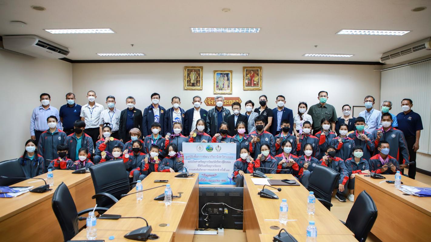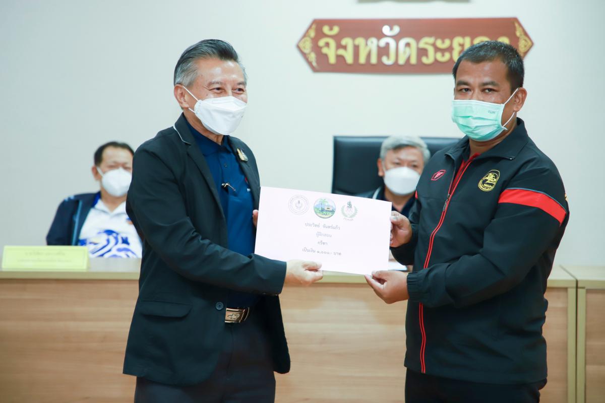 วันที่ 20 กันยายน 2565 เวลา 13.30 น. ณ ห้องประชุมภักดีศรีสงคราม ชั้น 4 ศาลากลางจังหวัดระยอง นายชาญนะ เอี่ยมแสง ผู้ว่าราชการจังหวัดระยอง เป็นประธานในพิธีมอบเงินค่าเหรียญรางวัลให้แก่นักกีฬาที่ได้รับเหรียญรางวัลจากการแข่งขันกีฬาเยาวชนแห่งชาติ ครั้งที่ 37 "พัทลุงเกมส์" และการแข่งขันกีฬาอาวุโสแห่งชาติ ครั้งที่ 4 "เสกักเกมส์" โดยมี นายประสานต์ พฤกษาชาติ รองนายกองค์การบริหารส่วนจังหวัดระยอง(2) นายมนตรี ชนะชัยวิบูลวัฒน์ ที่ปรึกษานายกองค์การบริหารส่วนจังหวัดระยอง นายวิเชียร แสงวงศ์กิจ นายกสมาคมกีฬาแห่งจังหวัดระยอง นายสงวน แสงวงศ์กิจ ประธานสภาอุตสาหกรรมจังหวัดระยอง นางสาวสายทอง จิตต์สว่าง ผู้อำนวยการสำนักงานการกีฬาแห่งประเทศไทย จังหวัดระยอง คณะกรรมการมูลนิธิเพื่อการพัฒนากีฬาจังหวัดระยอง คณะกรรมการบริหารสมาคมกีฬา ภาคเอกชนที่ให้การสนับสนุน พร้อมทั้งคณะนักกีฬาและผู้ฝึกสอน เข้าร่วมพิธีฯอย่างพร้อมเพรียง