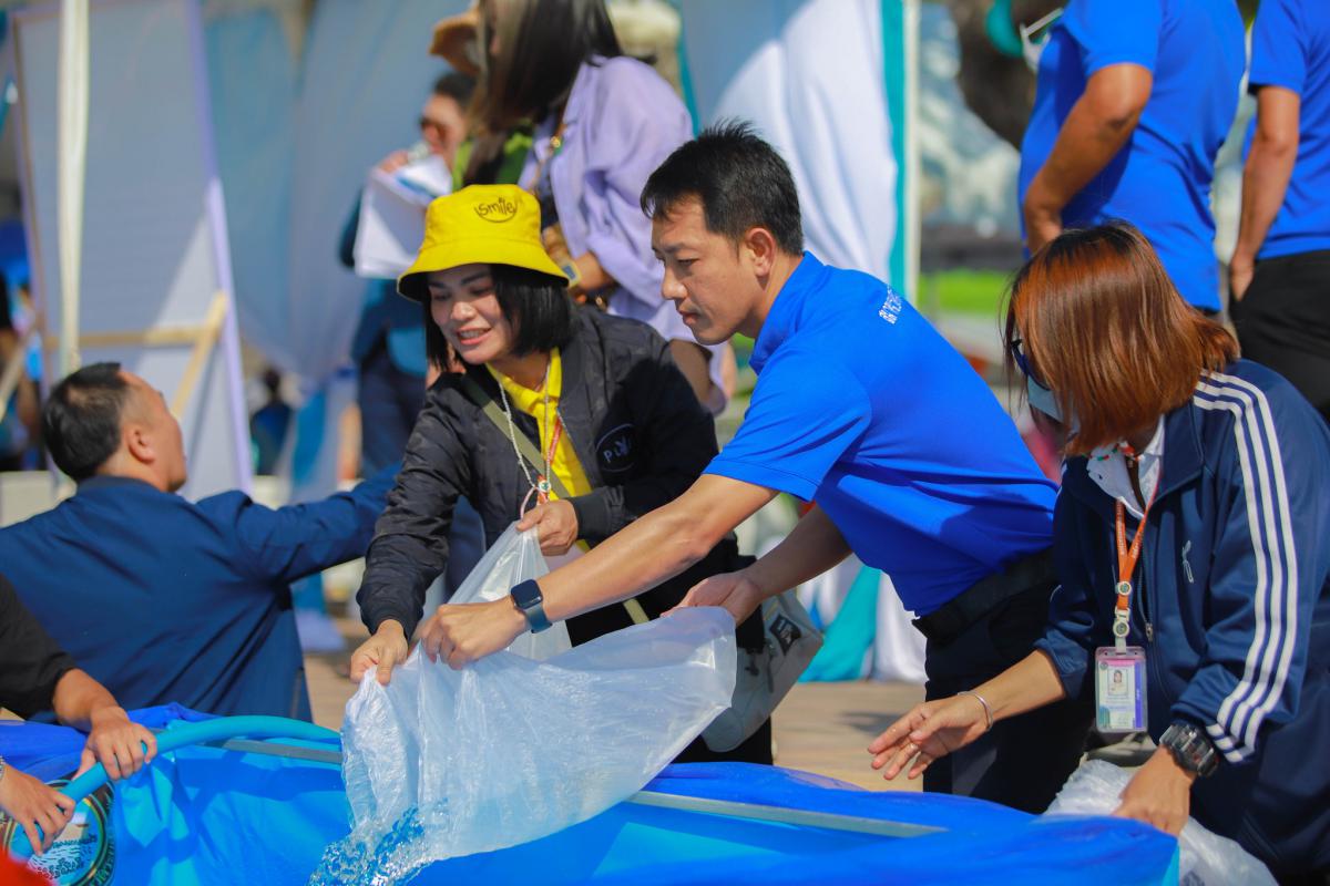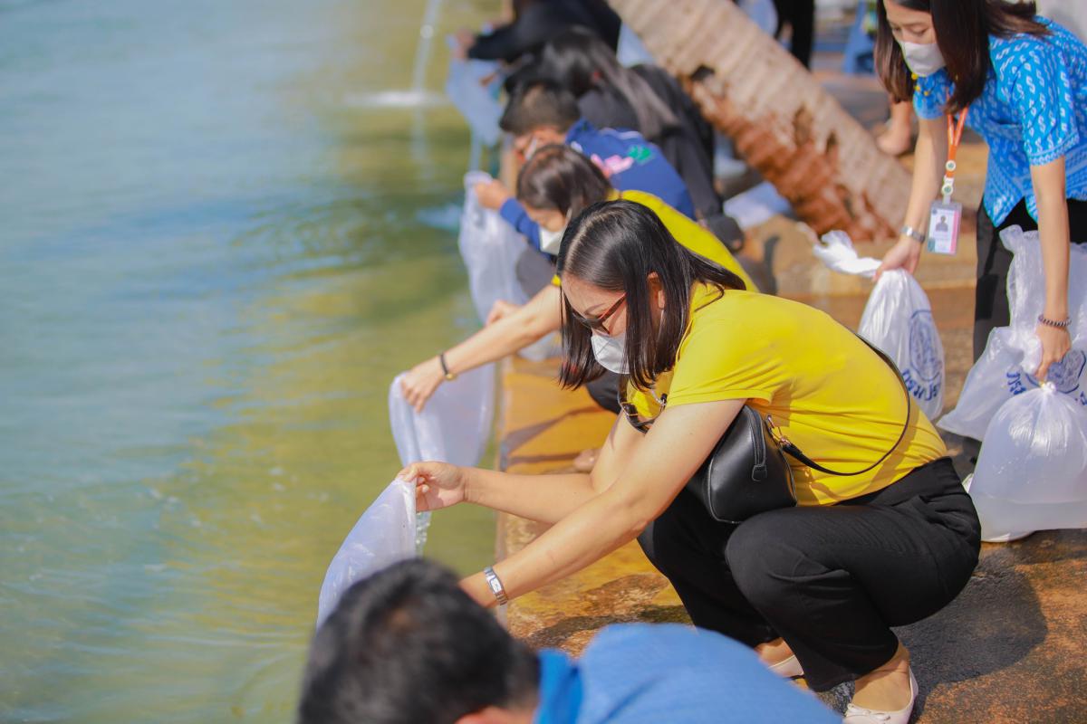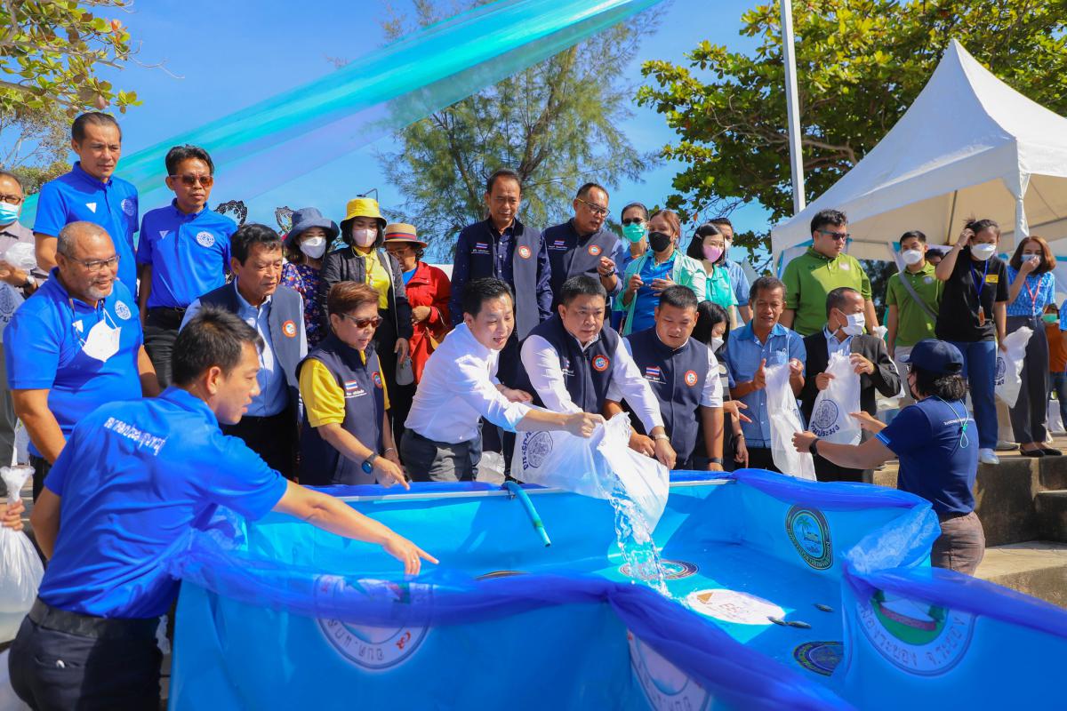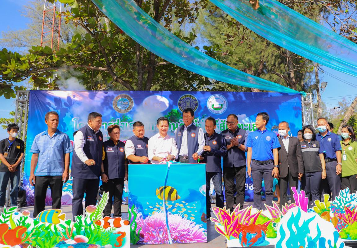 และชายฝั่งให้แก่ประชาชนและส่วนราชการในพื้นที่ และเป็นการเพิ่มจำนวนสัตว์ทะเล รักษาสมดุลระบบนิเวศ โดยการปล่อยพันธุ์สัตว์ทะเลให้กลับคืนสู่ธรรมชาติ สำหรับพันธุ์สัตว์ทะเลที่ได้จัดเตรียมไว้เพื่อปล่อยในวันนี้ ประกอบด้วย กุ้งทะเล, ปลากะพงขาว, หอยหวาน, ปลาการ์ตูนอินเดียแดง และปลาการ์ตูนอานม้า เพื่อให้เป็นมรดกทางธรรมชาติอยู่คู่กับทะเลระยองต่อไป