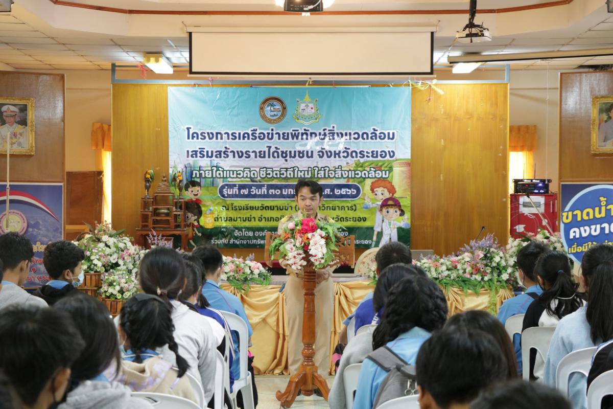วันที่ 30 มกราคม 2566 เวลา 09.00 น. องค์การบริหารส่วนจังหวัดระยอง ร่วมกับ ทรัพยากรธรรมชาติและสิ่งแวดล้อมจังหวัดระยอง จัด“โครงการเครือข่ายพิทักษ์สิ่งแวดล้อม เสริมสร้างรายได้ชุมชน จ.ระยอง ภายใต้แนวคิด ชีวิตวิถีใหม่ ใส่ใจสิ่งแวดล้อม รุ่นที่ 7” ณ โรงเรียนวัดมาบข่า ต.นิคมพัฒนา จ.ระยอง โดยมีนายนัฏพันธ์ ดิศเจริญ ผู้อำนวยการโรงเรียนวัดมาบข่า เป็นประธานเปิดโครงการ และนางสาวนารี เทพสุภรณ์กุล ผู้อำนวยการกองทรัพยากรธรรมชาติและสิ่งแวดล้อม เป็นผู้กล่าวถึงวัตถุประสงค์ของการจัดโครงการในครั้งนี้ พร้อมทั้งคณะเจ้าหน้าที่เข้าร่วมโครงการกันอย่างพร้อมเพรียง ซึ่งมีนักเรียนเข้าร่วมโครงการมากกว่า 95 คน