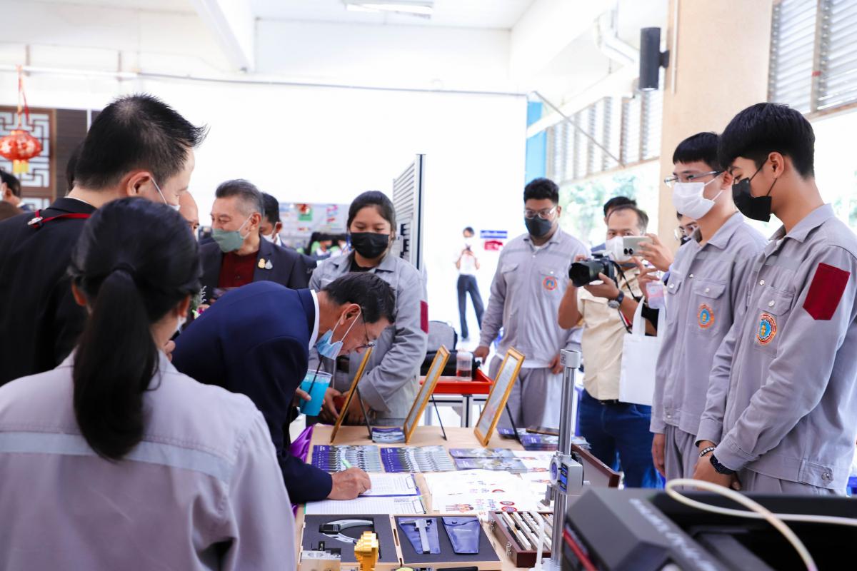 ซึ่งภายในงานยังได้จัดชมนิทรรศการ, พิธีมอบโล่ประกาศเกียรติคุณให้สถานประกอบการ, การเสวนา ในหัวข้อเรื่อง “อาชีวะยุคใหม่ ก้าวไกล EEC” และพิธีลงนามบันทึกความเข้าใจทางวิชาการและการวิจัย ระหว่างองค์การบริหารส่วนจังหวัดระยอง และ สถาบันเทคโนโลยีปทุมวัน เพื่อเป็นการประสานความร่วมมือในการพัฒนาการจัดการอาชีวศึกษาให้ตอบสนองต่อการผลิต และพัฒนากำลังคนตามความต้องการของสถานประกอบการในเขตพัฒนาพิเศษภาคตะวันออก EEC เพื่อเปิดโอกาศให้นักเรียน นักศึกษาในจังหวัดระยองที่มีความสนใจศึกษาต่อในสายวิชาชีพ โดยมีการจัดนิทรรศการประชาสัมพันธ์วิทยาลัยเทคโนโลยี อาชีวศึกษาตากสินระยอง สถาบันเทคโนโลยีปทุมวัน และสถานประกอบการมีการนำเสนอเทคโนโลยีสมัยใหม่แนะแนวการศึกษาต่อเพื่อให้ความรู้ด้านอาชีพ แก่ผู้ที่สนใจต่อไป