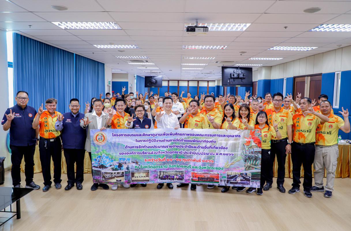 วันที่ 23 กุมภาพันธ์ 2566 เวลา 09.00 น. นายกิตติ เกียรติ์มนตรี รองนายกองค์การบริหารส่วนจังหวัดระยอง (1) พร้อมด้วย นายสมศักดิ์ เกตุสาคร เลขานุการนายกอบจ.ระยอง, นายอรุณ วิชกิจ ผู้เชี่ยวชาญพิเศษด้านการวางแผนและวิเคราะห์นโยบาย นายสมเกียรติ ยุพาพิน รองปลัดอบจ.ระยอง รักษาราชการแทน ปลัดอบจ.ระยอง สมาชิกสภาองค์การบริหารส่วนจังหวัดระยอง ข้าราชการ และเจ้าหน้าที่ที่เกี่ยวข้องร่วมให้การต้อนรับคณะศึกษาดูงานจากองค์การบริหารส่วนจังหวัดอุดรธานี นำโดย นายประเทือง เพชรโรจน์ ปลัดองค์การบริหารส่วนจังหวัดอุดรธานี และคณะ จำนวน 60 คน ซึ่งมาศึกษาดูงานภายใต้โครงการอบรมและศึกษาดูงานเพื่อเพิ่มศักยภาพของคณะกรรมการและบุคลากรในการปฏิบัติงานด้านการจัดทำแผนพัฒนาท้องถิ่น ด้านการจัดทำงบประมาณรายจ่ายประจำปี และด้านอื่นๆที่เกี่ยวข้องขององค์การบริหารส่วนจังหวัดอุดรธานี ประจำปีงบประมาณ พ.ศ. 2566 โดยมีการลงพื้นที่ศึกษาดูงานบริเวณ ศูนย์บริการนักท่องเที่ยวป่าชายเลนในเมืองจังหวัดระยอง และร่วมล่องเรือชมทัศนียภาพบริเวณริมแม่น้ำระยอง และร่วมเข้ารับฟังการบรรยาย การจัดทำแผนพัฒนาท้องถิ่น ด้านการจัดทำงบประมาณรายจ่ายประจำปี ณ ห้องประชุม 1 ชั้น 3 องค์การบริหารส่วนจังหวัดระยอง