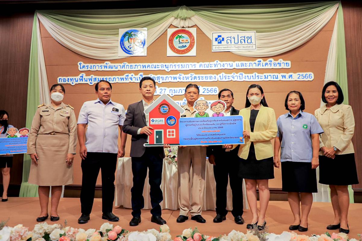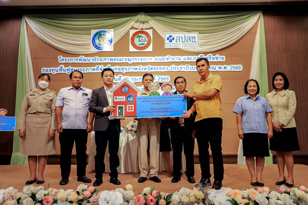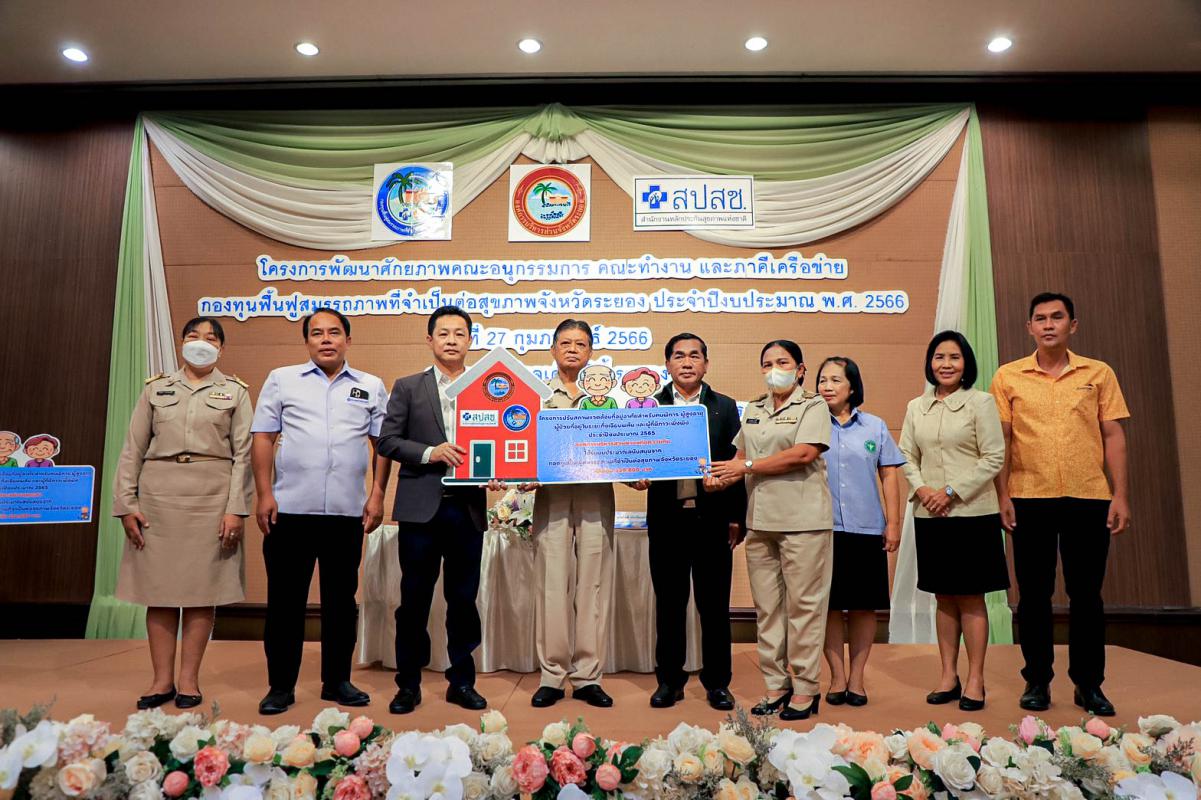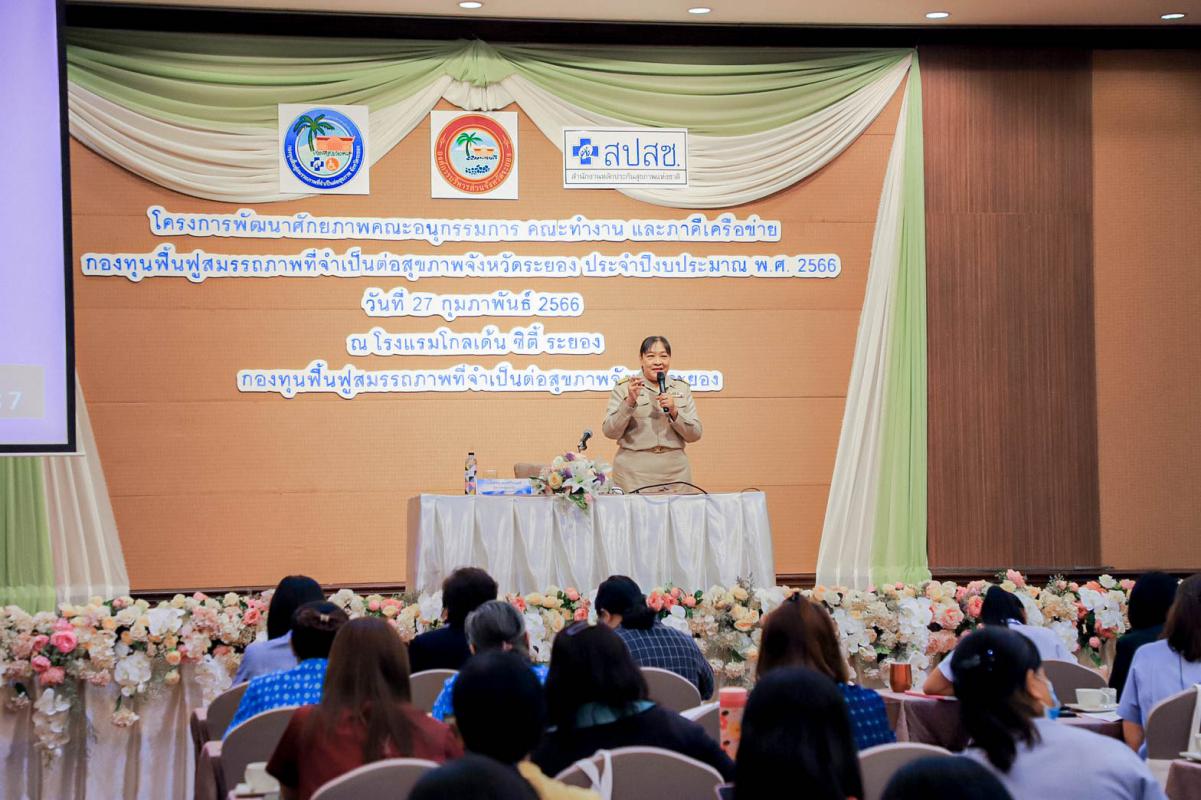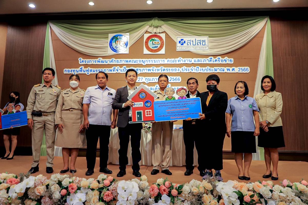 พิธีเปิดโครงการพัฒนาศักยภาพคณะอนุกรรมการ คณะทำงาน และภาคีเครือข่ายกองทุนฟื้นฟูสมรรถภาพที่จำเป็นต่อสุขภาพจังหวัดระยอง