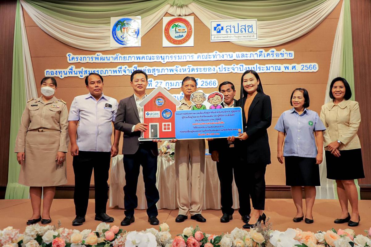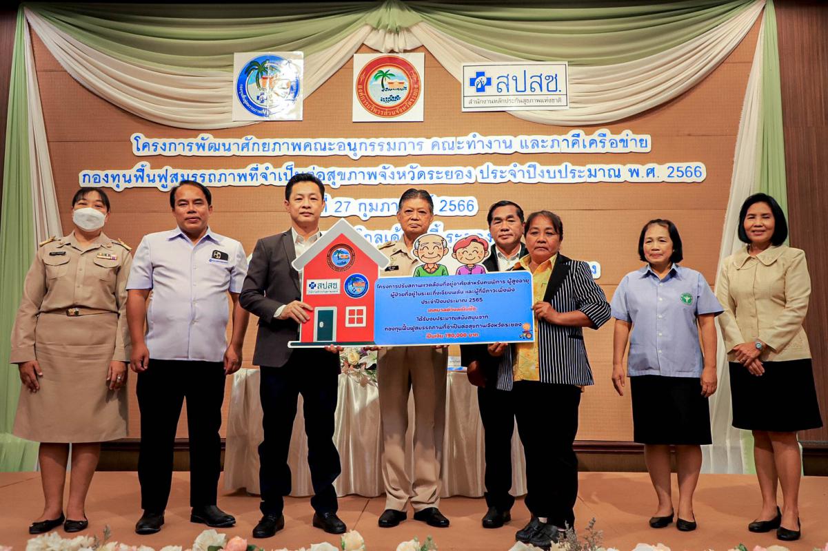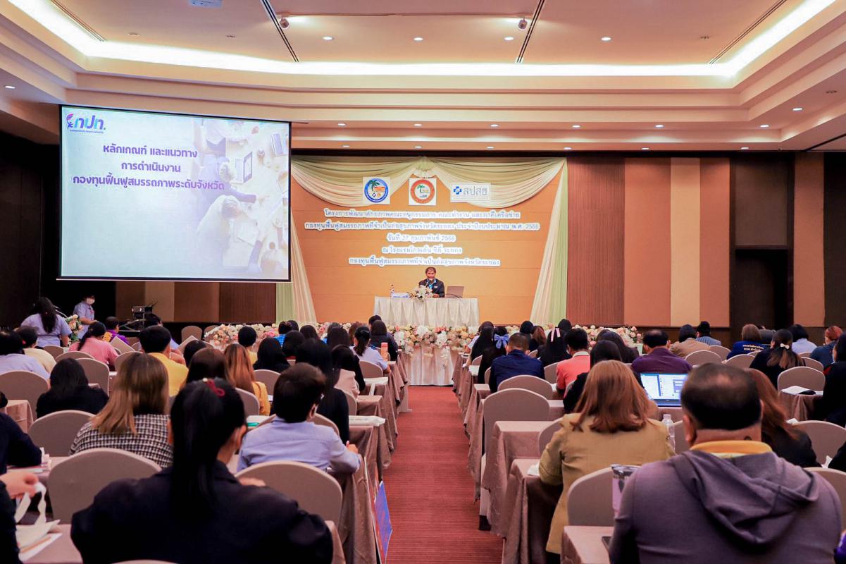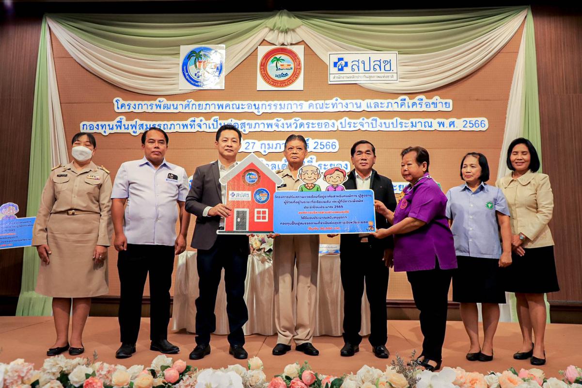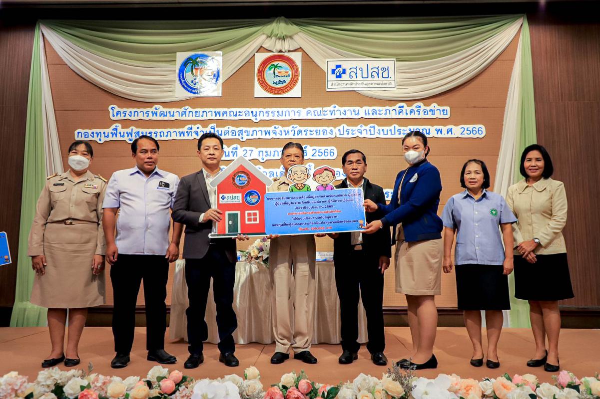 พิธีเปิดโครงการพัฒนาศักยภาพคณะอนุกรรมการ คณะทำงาน และภาคีเครือข่ายกองทุนฟื้นฟูสมรรถภาพที่จำเป็นต่อสุขภาพจังหวัดระยอง