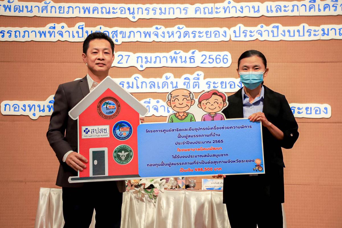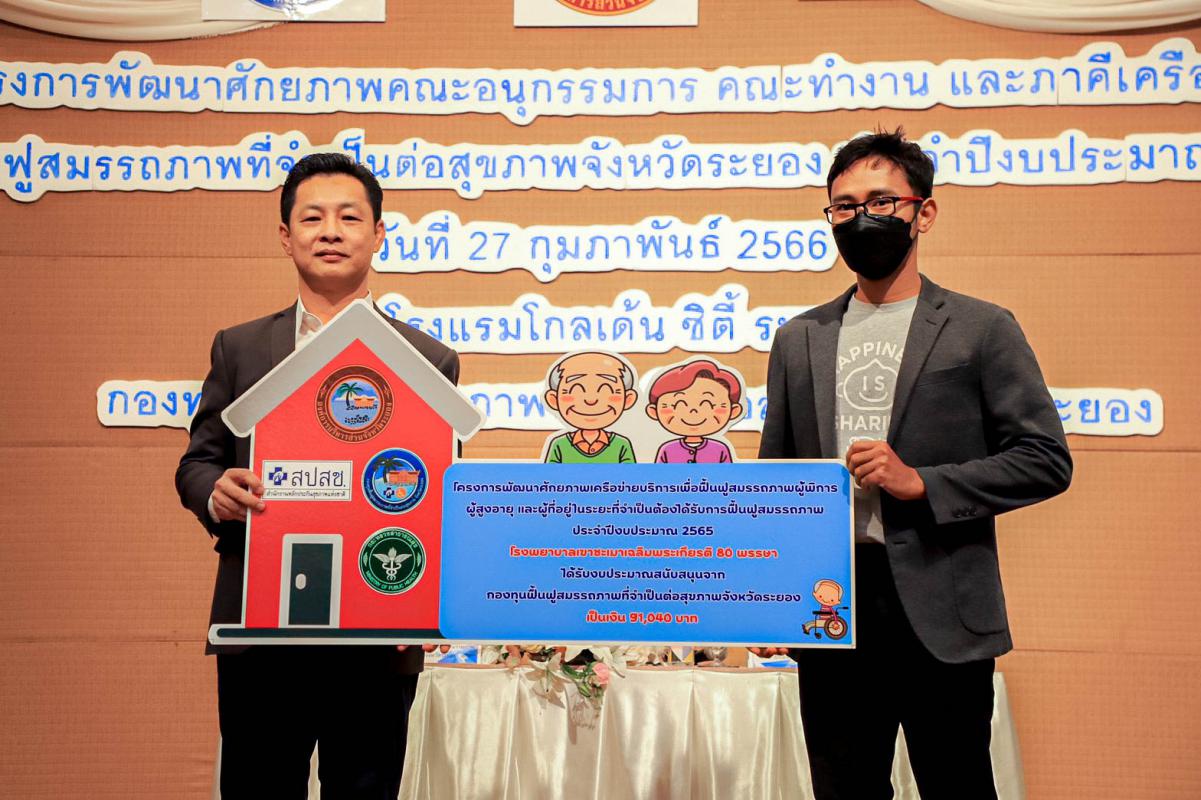 วันที่ 27 กุมภาพันธ์ 2566 เวลา 09.00 น. นายกิตติ เกียรติ์มนตรี รองนายกองค์การบริหารส่วนจังหวัดระยอง เป็นประธานเปิดโครงการพัฒนาศักยภาพคณะอนุกรรมการ คณะทำงาน และภาคีเครือข่ายกองทุนฟื้นฟูสมรรถภาพที่จำเป็นต่อสุขภาพจังหวัดระยอง ประจำปีงบประมาณ พ.ศ.2566 โดยมีนายสมเกียรติ ยุพาพิน รองปลัดองค์การบริหารส่วนจังหวัดระยอง เป็นผู้กล่าววัตถุประสงค์ของการจัดโครงการดังกล่าว ซึ่งมีผู้เข้าร่วมโครงการเป็นกลุ่มเจ้าหน้าที่ด้านสาธารณสุขจากโรงพยาบาลส่งเสริมสุขภาพต่างๆ ตัวแทนชมรมผู้พิการฯ แกนนำทางด้านสุขภาพ และเจ้าหน้าที่ที่เกี่ยวข้อง ณ โรงแรมโกลเด้นซิตี้ ระยอง