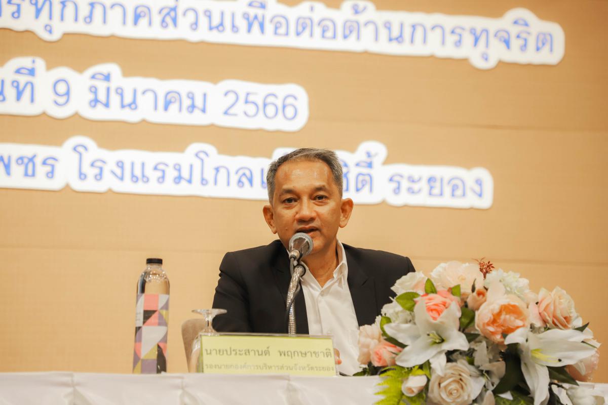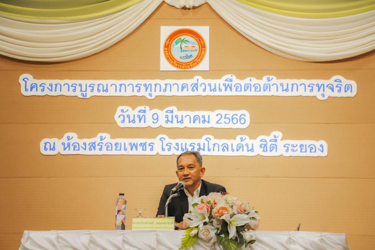 วันที่ 9 มีนาคม 2566 เวลา 09.00 น. นายประสานต์ พฤกษาชาติ รองนายกองค์การบริหารส่วนจังหวัดระยอง(2) เป็นประธานเปิดโครงการบูรณาการทุกภาคส่วนเพื่อต่อต้านการทุจริต พร้อมด้วยผู้อำนวยการกอง หัวหน้าส่วนราชการ และผู้ที่เกี่ยวข้องเข้าร่วมอย่างพร้อมเพรียงกัน โดยมีนายสมเกียรติ ยุพาพิน รองปลัดองค์การบริหารส่วนจังหวัดระยอง เป็นผู้กล่าววัตถุประสงค์ของของโครงการดังกล่าว ณ ห้องสร้อยเพชร โรงแรมโกลเด้น ซิตี้ ระยอง