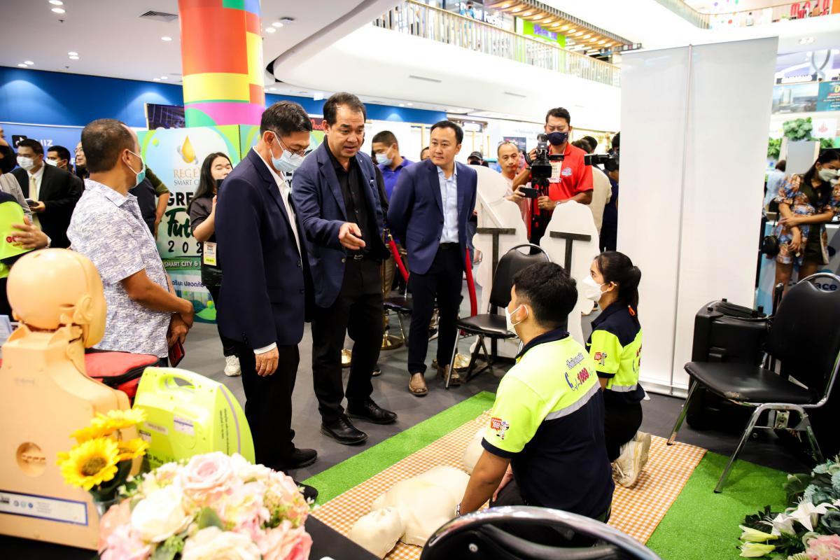 วันที่ 19 มีนาคม 2566 เวลา 10.30 น. นายอนันต์ นาคนิยม รองผู้ว่าราชการจังหวัดระยอง เป็นประธานในพิธี พร้อมด้วย นายปิยะ ปิตุเตชะ นายกองค์การบริหารส่วนจังหวัดระยอง, ดร.ธัชพล กาญจนกูล รองเลขาธิการ EEC, ดร.อังคนางค์ ชากีร่า บำรุงสรณ์ ประธานกรรมการ REGEN Solutions & Distribution Co., Ltd. ผู้แทนจากหน่วยงานภาครัฐ ภาคเอกชน และเจ้าหน้าที่ที่เกี่ยวข้องเข้าร่วมพิธีเปิดโครงการเมืองอัจฉริยะ ปลอดภัย ใส่ใจสิ่งแวดล้อมโดยพร้อมเพรียงกัน