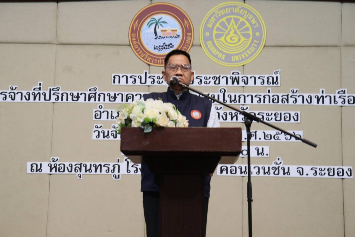 20 มีนาคม 2566 องค์การบริหารส่วนจังหวัดระยองและมหาวิทยาลัยบูรพา จัดการประชุมประชาพิจารณ์โครงการจัดจ้างที่ปรึกษาศึกษาความเหมาะสมในการก่อสร้างท่าเรือแหลมรุ่งเรือง จังหวัดระยอง โดยมีนายสมศักดิ์ เกตุสาคร เลขานุการนายกองค์การบริหารส่วนจังหวัดระยอง ให้เกียรติเป็นประธานในพิธีเปิด และ นายภูษิต ไชยฉ่ำ รองนายกเทศบาลนครระยอง ,สจ.ไพฑูรย์ รัตนพรวารีสกุล เขตอำเภอเมือง และเจ้าหน้าที่สำนักปลัดองค์การบริหารส่วนจังหวัดระยองโดยมี ดร.ปัทมา พอดี รองคณบดีฝ่ายวิจัยนวัตกรรมและบริการวิชาการ หัวหน้าโครงการ ได้รายงานถึงวัตถุประสงค์ของโครงการ กล่าวคือ เพื่อศึกษา วิเคราะห์ ศักยภาพความเหมาะสมของแหลมรุ่งเรืองในการเป็นพื้นที่แหล่งท่องเที่ยวและท่าเรือในการขับเคลื่อนเศรษฐกิจแห่งใหม่ของจังหวัดระยอง อีกทั้ง จัดทำฐานข้อมูลสารสนเทศและภูมิสารสนเทศที่ใช้ในการสนับสนุนการตัดสินใจในการพัฒนาแหลมรุ่งเรือง ตามหลักโมเดลเศรษฐกิจสู่การพัฒนาที่ยั่งยืน (BCG) การนี้ คณะผู้เชี่ยวชาญจากมหาวิทยาลัยบูรพา ได้ทำการศึกษาและสำรวจพื้นที่ทั้งด้านวิศวกรรม ด้านสิ่งแวดล้อม ด้านเศรษฐศาสตร์ ด้านการบริหารจัดการท่าเรือ โดยครั้งนี้มีชุมชนเข้าร่วมในการประชาพิจารณ์ 6 ชุมชน ได้แก่ ชุมชนแหลมรุ่งเรือง ชุมชนก้นปึกปากคลอง ชุมชนปากน้ำ 1 ชุมชนปากน้ำ 2 ชุมชนสมุทรเจดีย์ และชุมชนสัมฤทธิ์ รวมทั้ง หน่วยงานภาครัฐและผู้เกี่ยวข้อง เข้าร่วมกว่า 200 คน ซึ่งผลการประชุมประชาพิจารณ์ครั้งนี้ จะนำไปเป็นข้อมูลในการวิเคราะห์และจัดทำกรอบแนวคิดในการพัฒนาชุมชน เพื่อให้สอดคล้องตามแผนแม่บทขององค์การบริหารส่วนจังหวัดระยองต่อไป