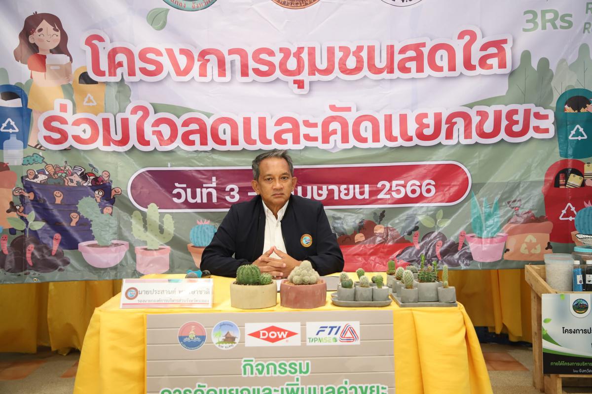 วันที่ 3 เมษายน 2566 เวลา 09.00 น. นายประสานต์ พฤกษาชาติ รองนายกองค์การบริหารส่วนจังหวัดระยอง ให้เกียรติเป็นประธานเปิด "โครงการชุมชนสดใส ร่วมใจลดและคัดแยกขยะ" ณ ศูนย์การเรียนรู้หมู่บ้านเอื้ออาทรระยอง (วังหว้า) โดยมีนางสาวเครือวัลย์ วงษ์มิตร รักษาการในตำแหน่งหัวหน้าฝ่ายจัดการมูลฝอยและสิ่งปฏิกูล เป็นผู้กล่าวรายงาน และนายไพโรจน์ ศรีสมบูรณ์ รองนายกองค์การบริหารส่วนตำบลห้วยยาง เป็นผู้กล่าวถึงวัตถุประสงค์ของการจัดโครงการในครั้งนี้ ซึ่งมีประชาชนในเขตพื้นที่อำเภอแกลง เข้าร่วมการอบรมกว่า 50 คน