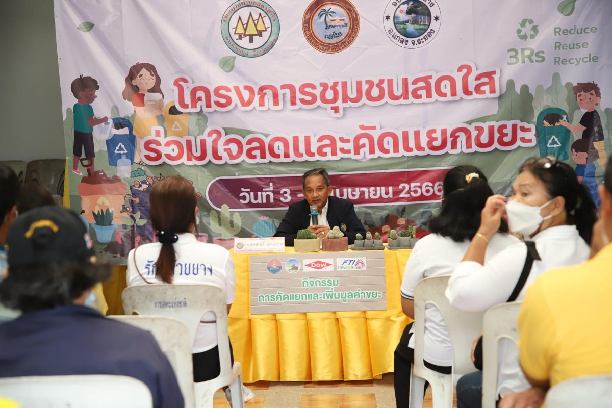 องค์การบริหารส่วนจังหวัดระยอง ได้รับมอบหมายจากจังหวัดระยองให้ดำเนินการบริหารจัดการขยะมูลฝอยในระยอง โดยได้ดำเนินการจัดตั้งสถานีขนถ่ายขยะมูลฝอยฯ (ศูนย์อำเภอแกลง) เพื่อรองรับขยะมูลฝอยจากอำเภอวังจันทร์ อำเภอแกลง และอำเภอเขาชะเมา ซึ่งจะได้รวบรวมขนถ่ายส่งไปยังศูนย์กำจัดขยะมูลฝอยฯต่อไป แต่ขยะส่วนใหญ่ยังคงไม่มีการคัดแยกอย่างถูกวิธี หากได้ทำการคัดแยกอย่างถูกวิธีจะทำให้ขยะมีมูลค่ามากยิ่งขึ้น โดยการอบรมในวันนี้ผู้เข้ารับการอบรมจะได้เข้าร่วมกิจกรรมธนาคารขยะ, การคัดแยกถุงพลาสติก, การเพิ่มมูลค่าจากขวดพลาสติก และการทำกระถางต้นไม้จากพลาสติก โดยคณะวิทยากรผู้มีความรู้ความสามารถ