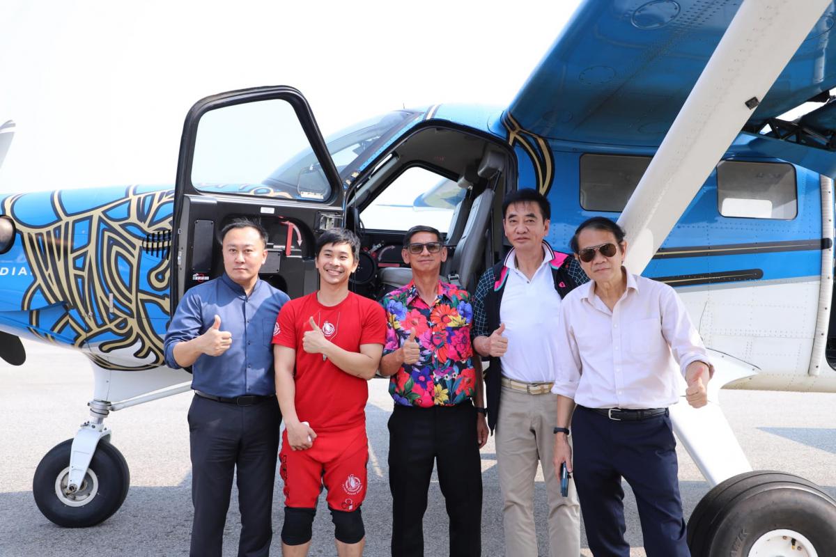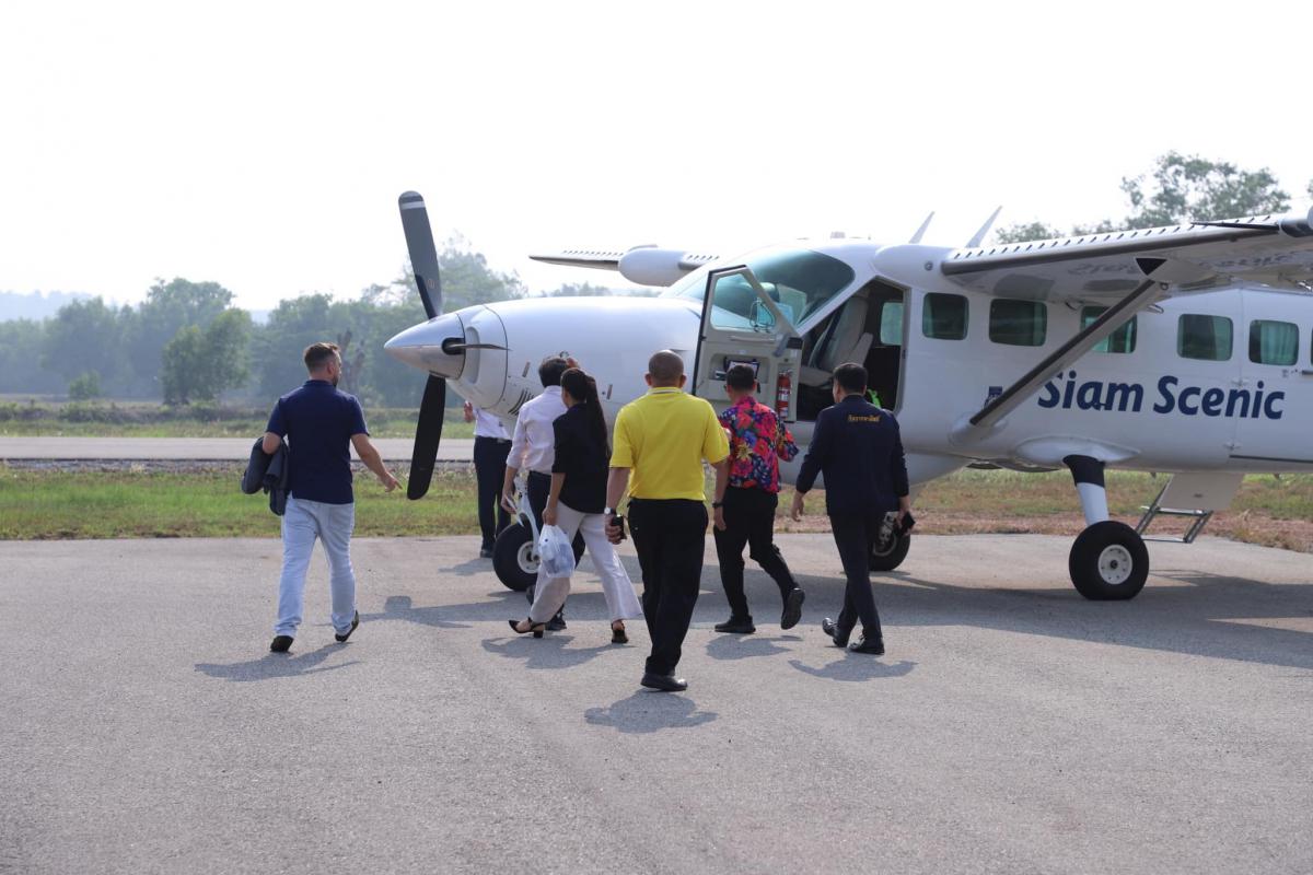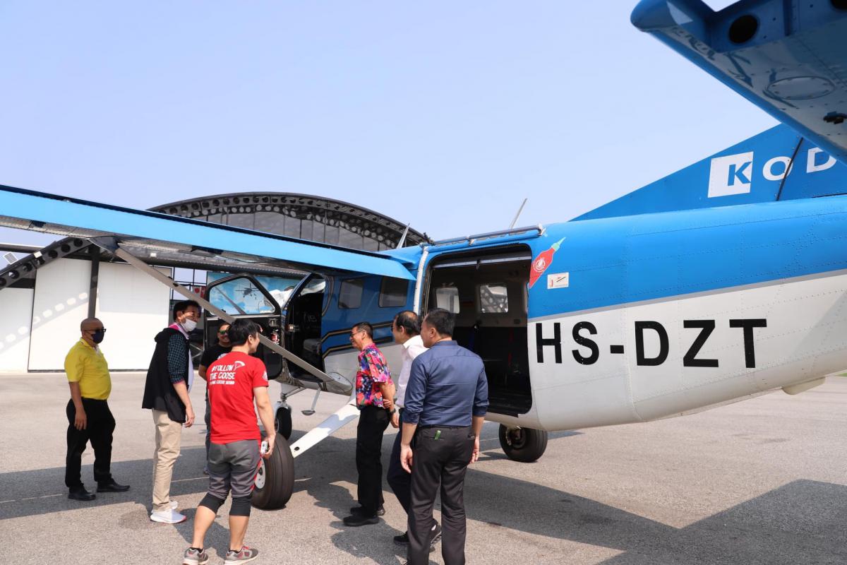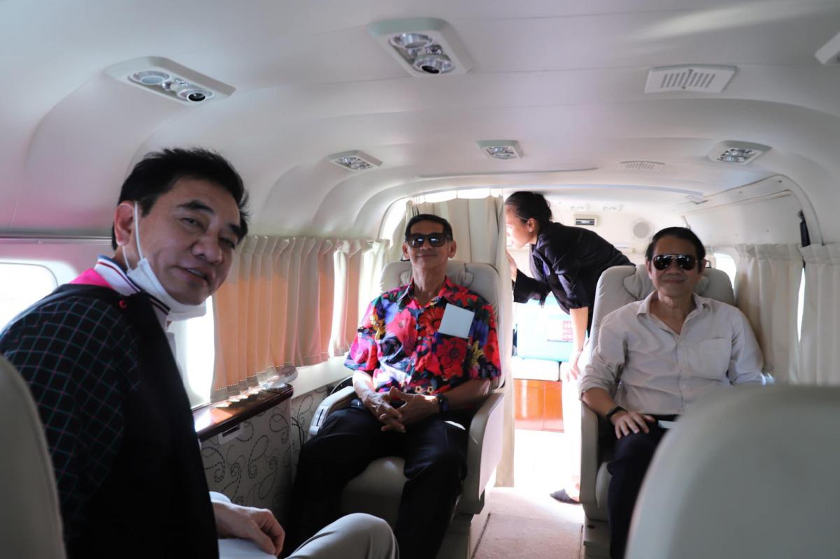 นายปิยะ ปิตุเตชะ นายกองค์การบริหารส่วนจังหวัดระยอง พร้อมด้วย ดร.คนิศ แสงสุพรรณ ประธานที่ปรึกษาพิเศษ สำนักงานคณะกรรมการนโยบายเขตพัฒนาพิเศษภาคตะวันออกและผู้ที่เกี่ยวข้อง เข้าร่วมในเที่ยวบิน Scenic Flight หรือเที่ยวบินชมทิวทัศน์ ในเขตจังหวัดระยอง