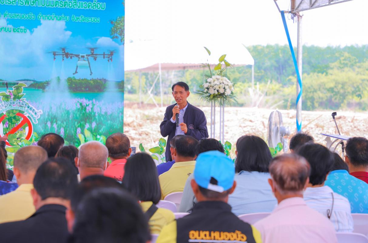 ซึ่งโครงการครั้งนี้จัดขึ้นเพื่อแก้ไขปัญหาสิ่งแวดล้อมโดยการกำจัดผักตบชวาและวัชพืชในลำน้ำ โดยการใช้โดรน และใช้สูตรสวพ.62-RID No.1 ในการกำจัดวัชพืชลอยน้ำโดยเฉพาะอย่างยิ่งผักตบชวา ซึ่งสารละลายดังกล่าวคิดค้นโดยสำนักวิจัยและพัฒนา กรมชลประทาน สามารถแก้ไขปัญหาการแพร่ระบาดของผักตบชวาได้อย่างมีประสิทธภาพ และปลอดภัยต่อสิ่งแวดล้อม เพื่อเป็นการดูแลและฟื้นฟูแหล่งน้ำจืดในพื้นที่จังหวัดระยองให้มีความอุดมสมบูรณ์อย่างยั่งยืนต่อไป