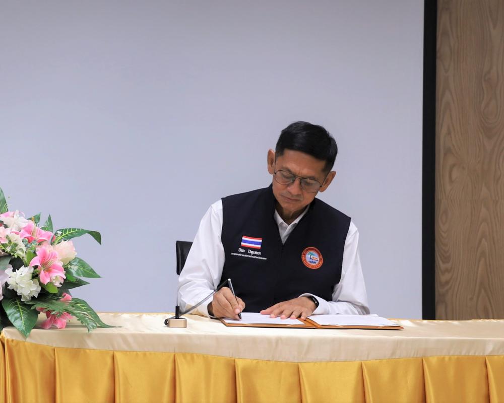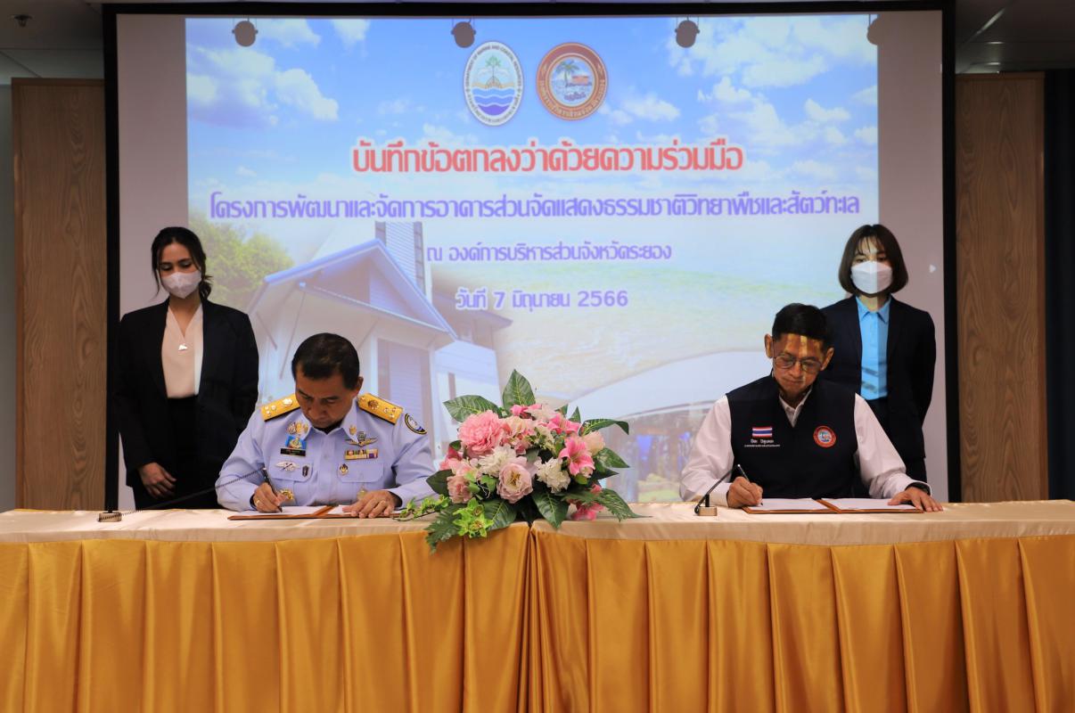 พิธีลงนามบันทึกข้อตกลงความร่วมมือ (MOU) ระหว่าง อบจ.ระยอง กับ กรมทรัพยากรทางทะเลและชายฝั่ง โครงการพัฒนาและจัดการอาคารส่วนจัดแสดงธรรมชาติวิทยาพืชและสัตว์ทะเลภายในศูนย์วิจัยทรัพยากรทางทะเลและชายฝั่งอ่าวไทยฝั่งภาคตะวันออก ตำบลปากน้ำประแส อำเภอแกลง จังหวัดระยอง