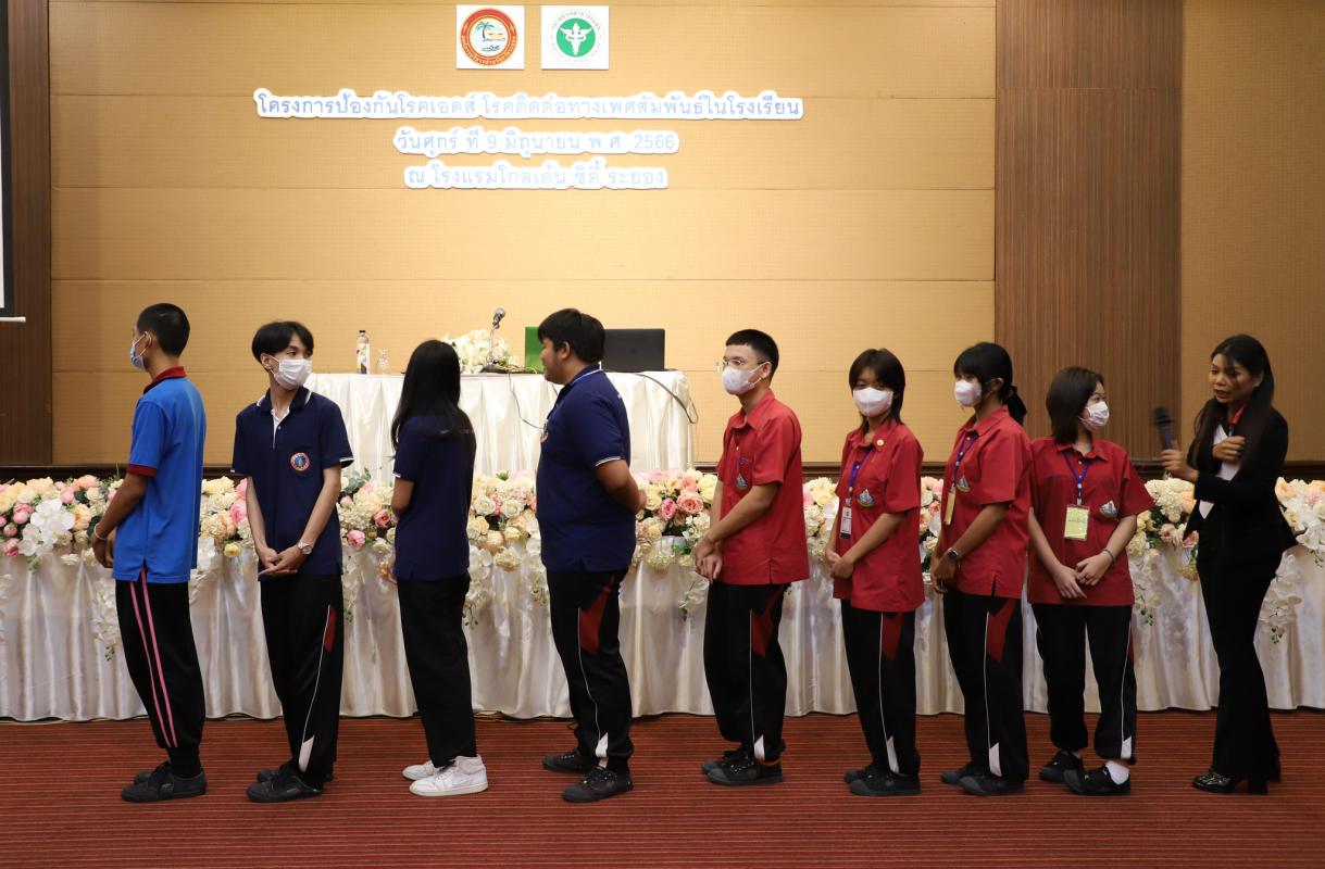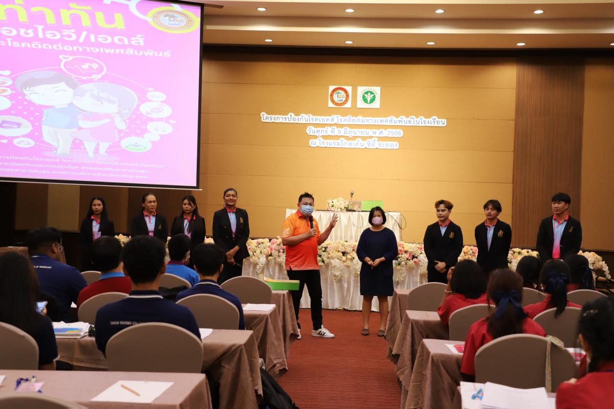 โดยการจัดโครงการดังกล่าว ได้รับเกียรติจากนางพัสอร ฤกษ์ธงชัยสกุล พยาบาลวิชาชีพชำนาญการ และนายเวสารัช วรุตมะพงศ์พันธุ์ เจ้าพนักงานสาธารณสุขชำนาญงาน สำนักงานสาธารณสุขจังหวัดระยอง พร้อมด้วยนางสาวภัทรินทร์ พลายละหาร และนายณัฐพล สงสันเทียะ จากมูลนิธิSister มาเป็นวิทยากรบรรยายให้ความรู้ และทำกิจกรรมต่างๆในโครงการ อาทิเข่น ความรู้และการป้องกันโรคเอดส์ และโรคติดต่อทางเพศสัมพันธ์ กิจกรรมวิถีทางเพศ ทักษะการปฏิเสธในสถานการณ์ที่อาจนำไปสู่การมีเพศสัมพันธ์ รวมถึงการบรรยายและสาธิตการใช้ถุงยางอนามัยอย่างถูกวิธี ซึ่งเป็นการจัดอบรมให้กับนักเรียน ครู บุคลากรทางการศึกษา และบุคลากรของอบจ.ระยอง เพื่อให้ความรู้ สร้างความตระหนัก และทัศนคติที่ถูกต้องเกี่ยวกับโรคเอดส์และโรคติดต่อทางเพศสัมพันธ์ในนักเรียน เพื่อนำไปสู่การมีพฤติกรรมทางเพศที่ปลอดภัย ตลอดจนเกิดเครือข่ายสุขภาพนักเรียนร่วมรณรงค์ป้องกันโรคเอดส์และโรคติดต่อทางเพศสัมพันธ์ในโรงเรียน