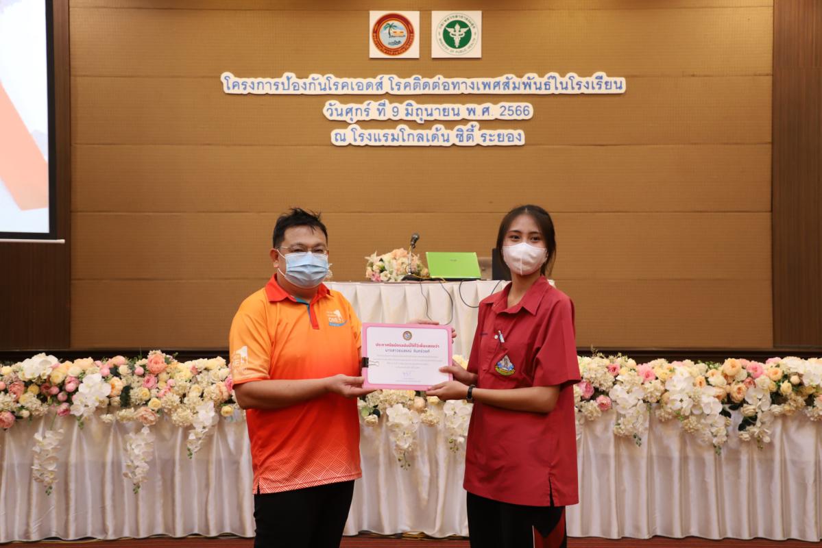 วันที่ 9 มิถุนายน 2566 เวลา 09.00 น. นายแพทย์ชัยวัฒน์ จัตตุพร เลขานุการนายกองค์การบริหารส่วนจังหวัดระยอง ให้เกียรติเป็นประธานในการเปิดโครงการป้องกันโรคเอดส์ โรคติดต่อทางเพศสัมพันธ์ในโรงเรียน โดยมีนายสุริยะ ศิริวัฒน์ โรงพยาบาลส่งเสริมสุขภาพตำบล รักษาราชการแทนผู้อำนวยการกองสาธารณสุข เป็นผู้กล่าวถึงวัตถุประสงค์ของการจัดโครงการ พร้อมด้วยเจ้าหน้าที่ที่เกี่ยวข้องเข้าร่วมพิธีเปิดโครงการดังกล่าวอย่างพร้อมเพรียง ณ โรงแรมโกลเด้น ซิตี้ ระยอง อ.เมือง จ.ระยอง