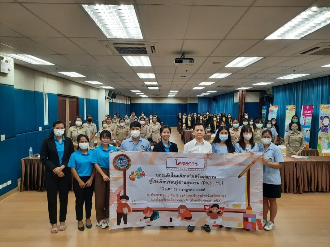 วันที่ 10 กรกฎาคม 2566 เวลา 09.00 น.นายกิตติ เกียรติ์มนตรี รองนายกองค์การบริหารส่วนจังหวัดระยอง เป็นประธานเปิด "โครงการยกระดับโรงเรียนส่งเสริมสุขภาพสู่โรงเรียนรอบรู้ด้านสุขภาพ (Plus HL)" โดยมีนางสาวพนิดา เจริญสุข พยาบาลวิชาชีพปฏิบัติการ เป็นผู้กล่าวรายงาน ณ ห้องประชุม 2 ชั้น 3 อบจ.ระยอง