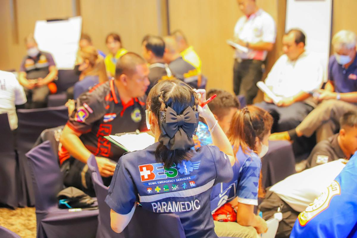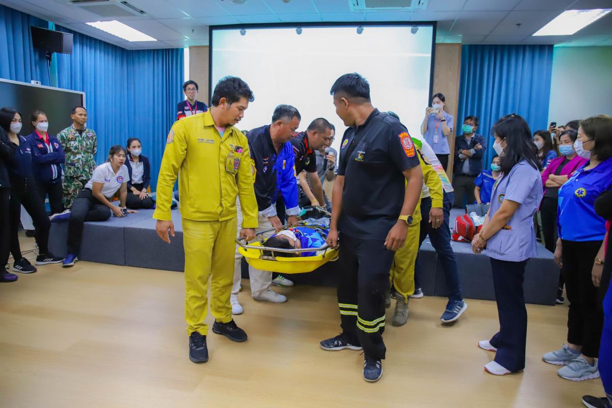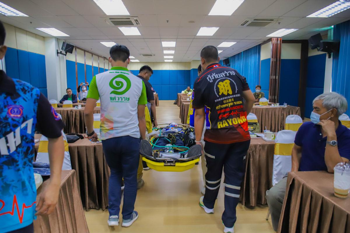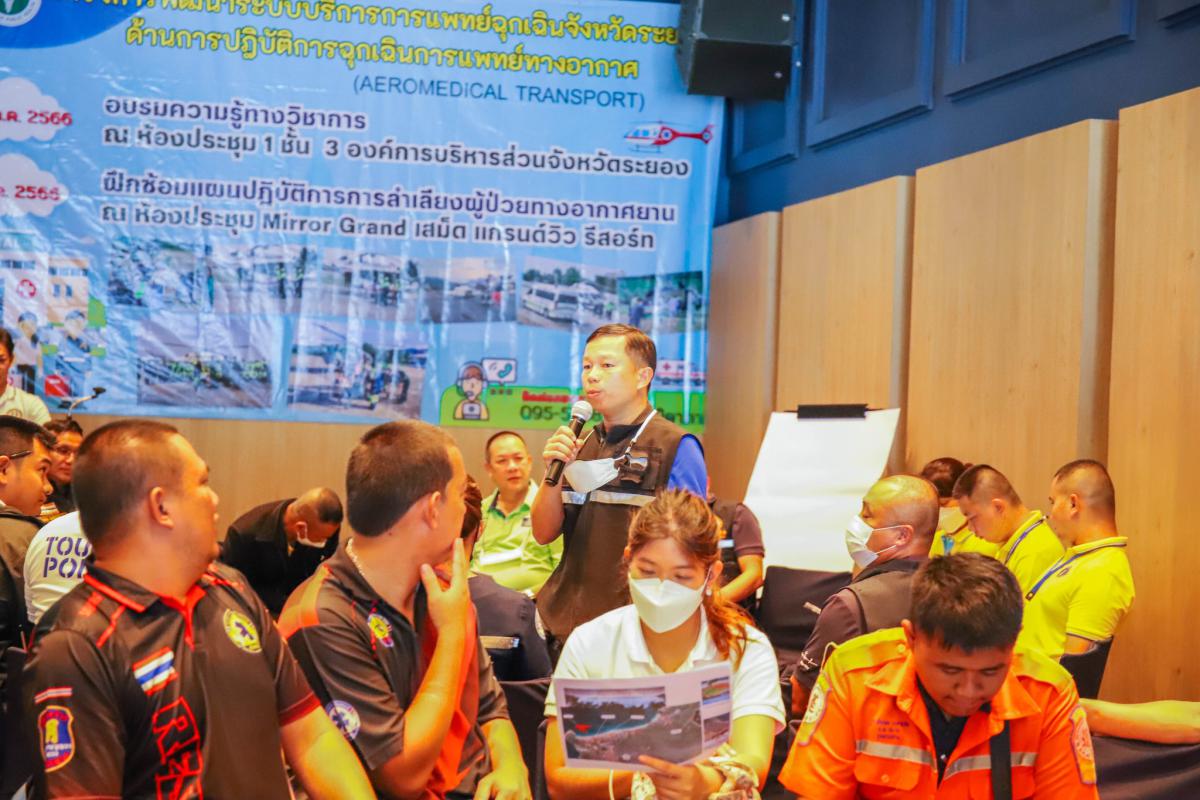 วันที่ 12 กรกฎาคม 2566 เวลา 08.00 น. โครงการพัฒนาระบบบริการแพทย์ฉุกเฉินจังหวัดระยอง ด้านการปฏิบัติการฉุกเฉินการแพทย์ทางอากาศ (Aeromedical Transport)ได้แบ่งออกเป็น 2 ช่วง โดยในช่วงเช้า นายแพทย์ภคพล เอี่ยมไพบูลย์พันธ์ ให้เกียรติเป็นวิทยากรให้ความรู้ในการบรรยายหัวข้อ 'แนวทางการประสานและการจัดการลำเลียงทางอากาศ' และร.ต.ชาติชาย สุภาพ พยาบาลเวชศาสตร์การบิน โรงพยาบาลสมิติเวช สุขุมวิท ให้เกียรติบรรยายในหัวข้อ 'การประเมิน การดูแลผู้ป่วย ผู้บาดเจ็บ ในการลำเลียงทางอากาศ' พร้อมทั้งสาธิต 'การปฏิบัติและการดูแลผู้ป่วย ผู้บาดเจ็บ ในการลำเลียงทางอากาศ' โดยนายวิวิศน์ จิระศิริวัฒน์ ผู้จัดการอาวุโส แผนกเคลื่อนย้ายผู้ป่วย โรงพยาบาลสมิติเวช สุขุมวิท และในช่วงบ่ายได้ออกเดินทางไปยังเสม็ด แกรนด์วิว รีสอร์ท เพื่อฝึกซ้อมแผนจำลองสถานการณ์ฉุกเฉินบนโต๊ะ (Table Top Exercise : TTX) โดยนายแพทย์ภคพล เอี่ยมไพบูลย์พันธ์ และนายแพทย์ณิชพล จันทร์ประเสริฐ ซึ่งในระหว่างการฝึกซ้อม นายปิยะ ปิตุเตชะ นายกองค์การบริหารส่วนจังหวัดระยอง ได้เข้าเยี่ยมชมการฝึกซ้อม และลงพื้นที่ตรวจเยี่ยมปัญหาต่างๆบนเกาะเสม็ด