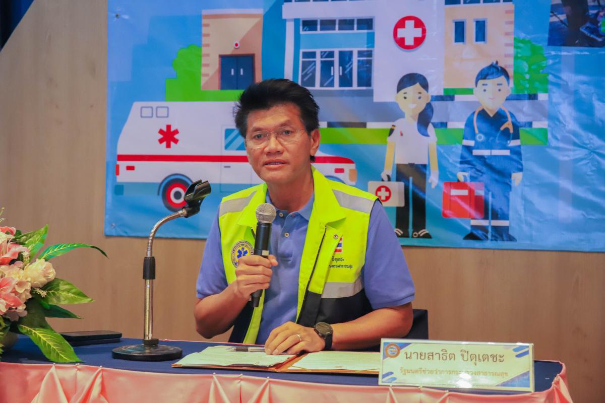 วันที่ 13 กรกฎาคม 2566 เวลา 09.00 น. นายสาธิต ปิตุเตชะ รัฐมนตรีช่วยว่าการกระทรวงสาธารณสุข เป็นประธานเปิดโครงการ “พัฒนาระบบบริการแพทย์ฉุกเฉินจังหวัดระยอง ด้านการปฏิบัติการฉุกเฉินการแพทย์ทางอากาศ (Aeromedical Transport)” โดยมีนายกิตติ เกียรติ์มนตรี รองนายกองค์การบริหารส่วนจังหวัดระยอง เป็นผู้กล่าวรายงาน ซึ่งได้รับความร่วมมือทุกภาคส่วน ณ เกาะเสม็ด โดย อบจ.ระยอง สถาบันการแพทย์ฉุกเฉินแห่งชาติ ศูนย์อำนวยการรักษาผลประโยชน์ของชาติทางทะเล สาธารณะสุขจังหวัดระยอง อุทยานแห่งชาติเขาแหลมหญ้า – หมู่เกาะเสม็ด อบต.เพ รวมถึงหน่วยงานอื่นๆ ที่เกี่ยวข้อง ได้ร่วมจัดทำโครงการพัฒนาระบบบริการแพทย์ฉุกเฉินจังหวัดระยอง ด้านการปฏิบัติการฉุกเฉินการแพทย์ทางอากาศ (Aeromedical Transport) เพื่อเป็นการร่วมกันวางแผนป้องกันและบรรเทาสาธารณภัยในเขตพื้นที่จังหวัดระยอง หากเกิดสถานการณ์ฉุกเฉินภัยพิบัติต่างๆ จะได้มีแผนรองรับที่ใช้ในงานที่เกี่ยวข้องทั้งหน่วยงานภาครัฐ และเอกชน ให้เป็นไปในแนวทางเดียวกัน ทำให้เกิดความรวดเร็ว ปลอดภัยทั้งผู้ปฏิบัติงาน และผู้ประสบเหตุสาธารณภัย และยังสามารถรับมือ บริหารจัดการภาวะภัยพิบัติตั้งแต่ขนาดเล็กจนถึงขนาดใหญ่ ได้อย่างรวดเร็วและมีประสิทธิภาพที่ดีต่อไป