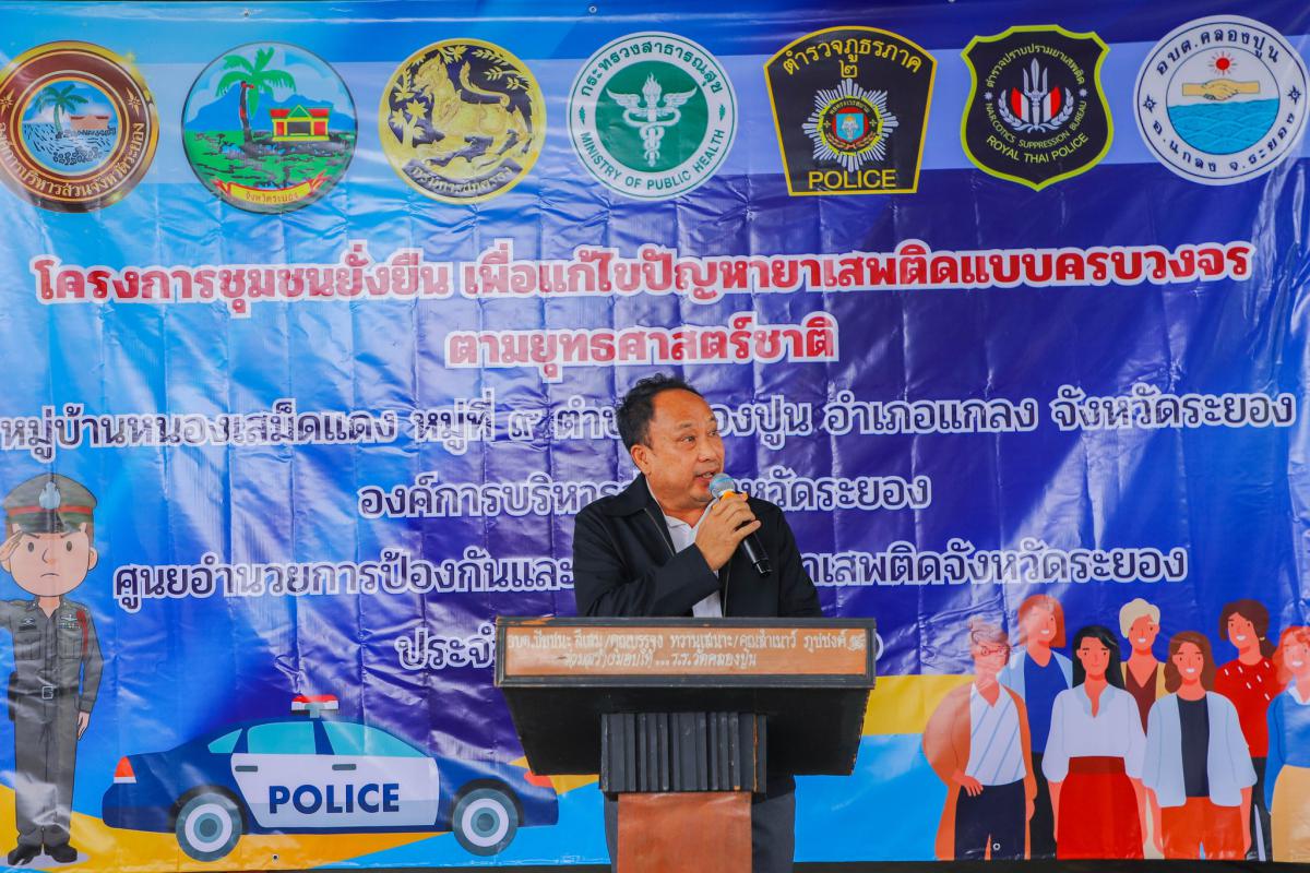 วันที่ 19 กรกฎาคม 2566 เวลา 10.30 น. นายจรัญ ความเพียร เลขานุการองค์การบริหารส่วนจังหวัดระยอง ได้เข้าร่วมพิธีเปิดโครงการส่งเสริมการมีส่วนร่วมเฝ้าระวัง ป้องกัน บำบัด รักษา ฟื้นฟูสมรรถภาพ และแก้ไขปัญหายาเสพติด ภายใต้กิจกรรม "อบรมและสร้างหมู่บ้านต้นแบบชุมชนยั่งยืนเพื่อแก้ไขปัญหายาเสพติดแบบครบวงจรตามยุทธศาสตร์" ประจำปีงบประมาณ 2566 พร้อมทั้งเป็นผู้กล่าวรายงานวัตถุประสงค์ของโครงการดังกล่าว โดยมีนายสุพจน์ ต่ออาจหาญ รองผู้ว่าราชการจังหวัดระยอง เป็นประธานในพิธีเปิด พร้อมด้วยหัวหน้าส่วนราชการ ข้าราชการ เจ้าหน้าที่ และผู้ที่เกี่ยวข้อง เข้าร่วมพิธีเปิดโครงการดังกล่าวอย่างพร้อมเพรียง ณ ศาลาประชาคมบ้านเนินสมบูรณ์ ตำบลคลองปูน อำเภอแกลง จังหวัดระยอง