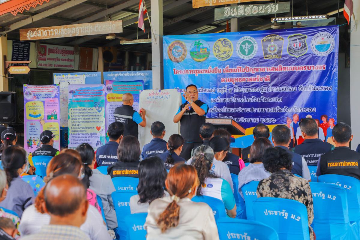 โครงการส่งเสริมการมีส่วนร่วมเฝ้าระวัง ป้องกัน บำบัด รักษา ฟื้นฟูสมรรถภาพ และแก้ไขปัญหายาเสพติด ภายใต้กิจกรรม "อบรมและสร้างหมู่บ้านต้นแบบชุมชนยั่งยืนเพื่อแก้ไขปัญหายาเสพติดแบบครบวงจรตามยุทธศาสตร์" ประจำปีงบประมาณ 2566